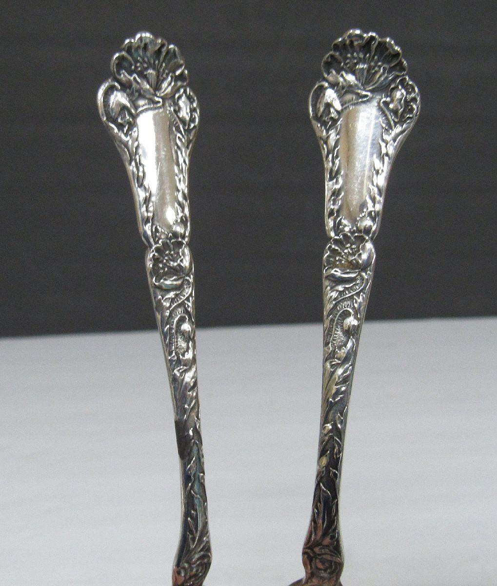 2 Antique Gorham Sterling Silver Coffee Spoons, Poppy Pattern, Nice