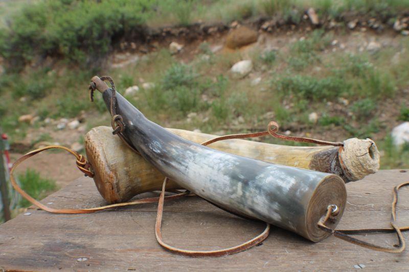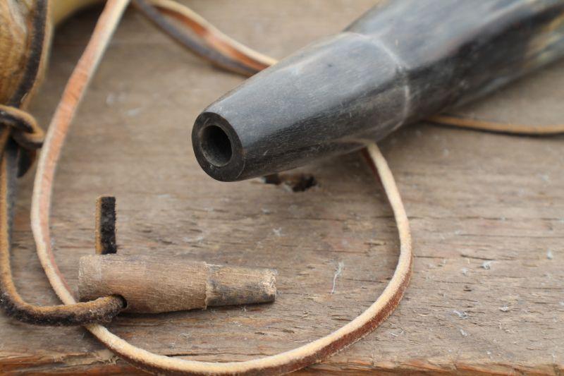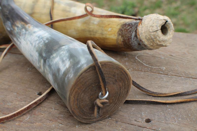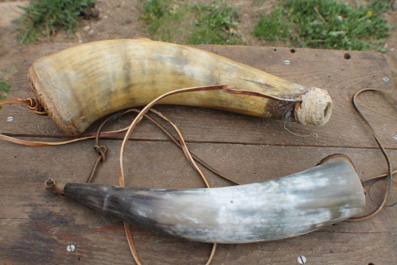 Lot #31: (2) Antique/Vintage Powderhorns (one was full of black powder but has been emptied due to ATF regulations)