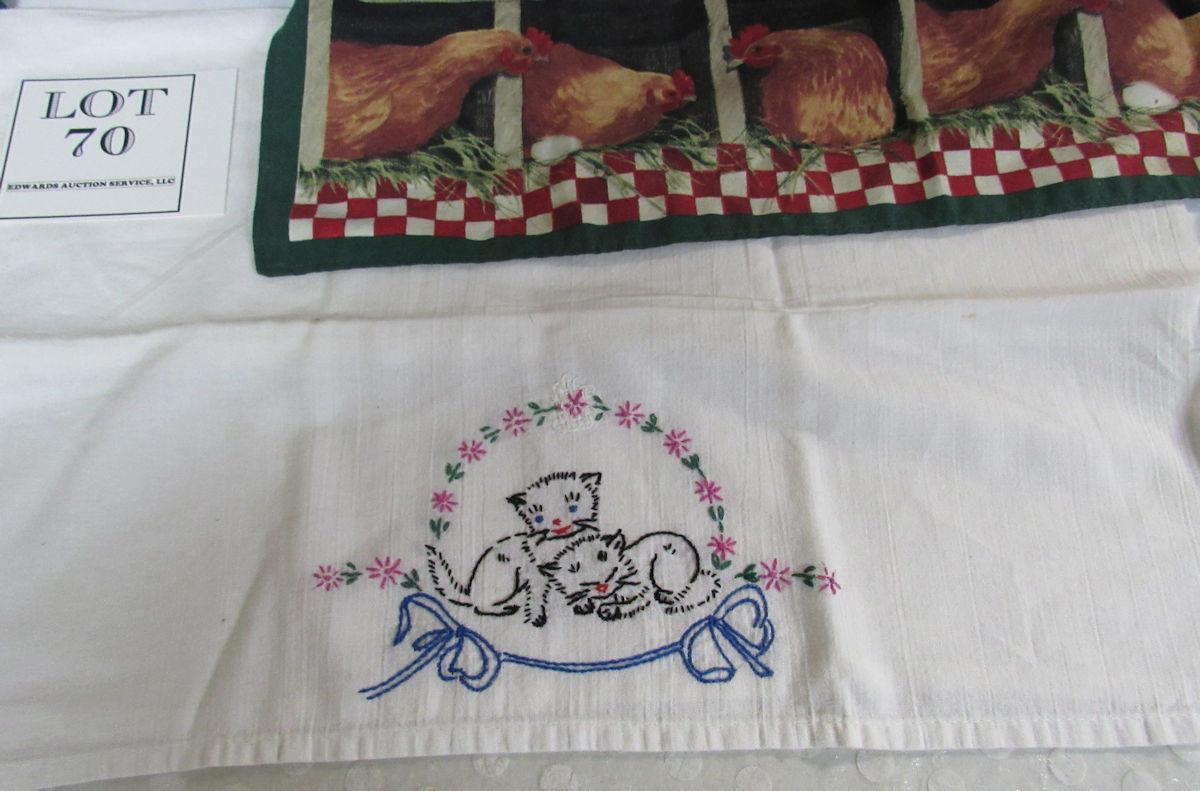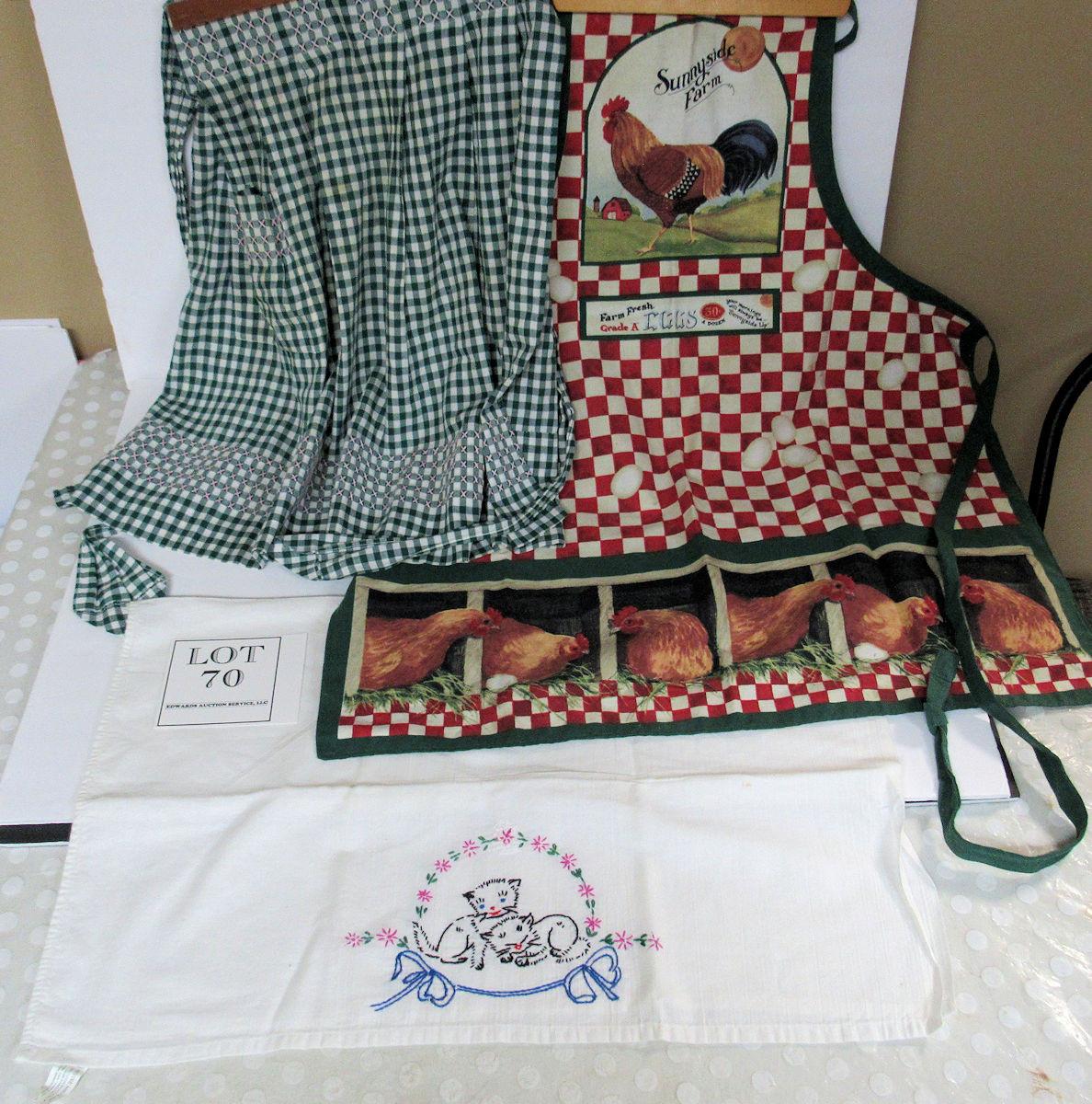 2 Aprons and Embroidered Kitchen Towel With Kittens