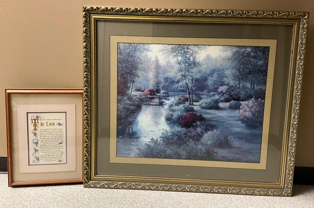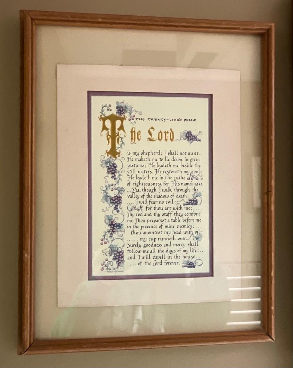 Large picture in gold frame, framed Psalm 23