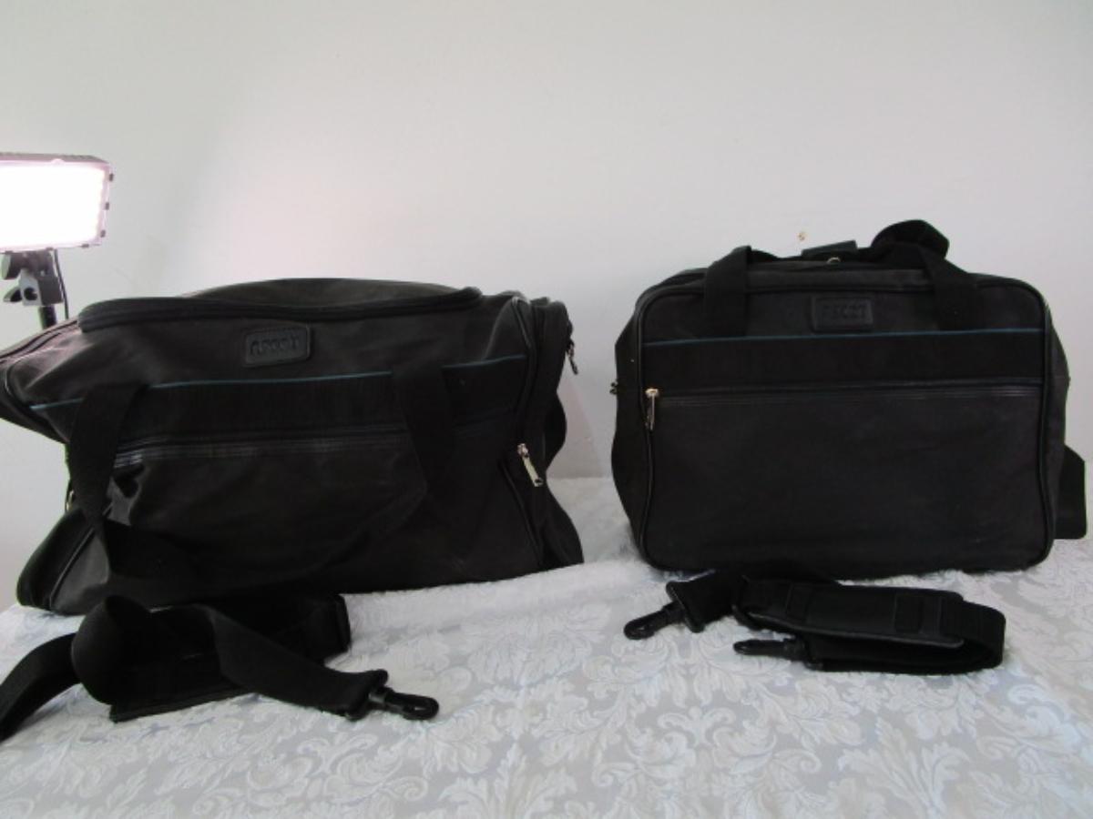 2 Ascot bags with luggage tags, feet, and shoulder straps