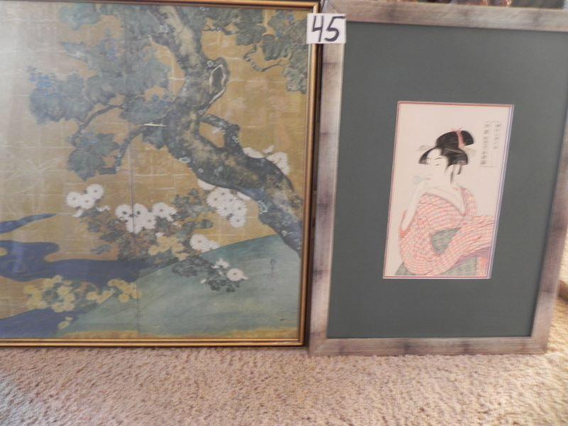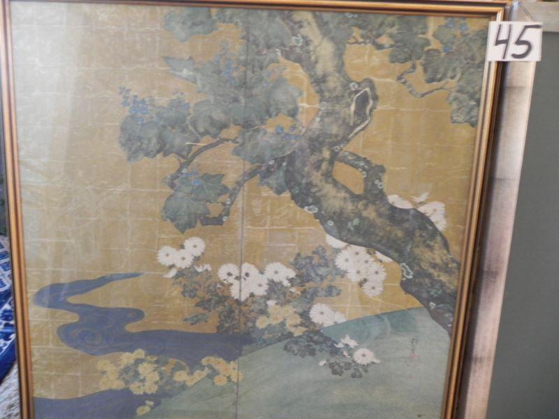 Asian woman 221/2"Wx30"H, Paulownias & Chrysanthemums 30"Wx30"H