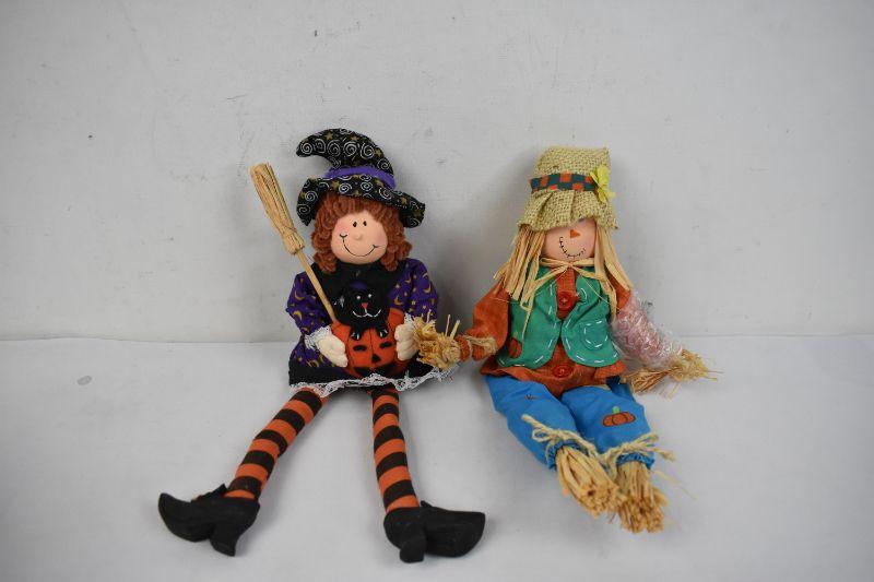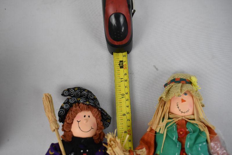 2 Avon Halloween Shelf Sitters, with Boxes: Scarecrow & Witch