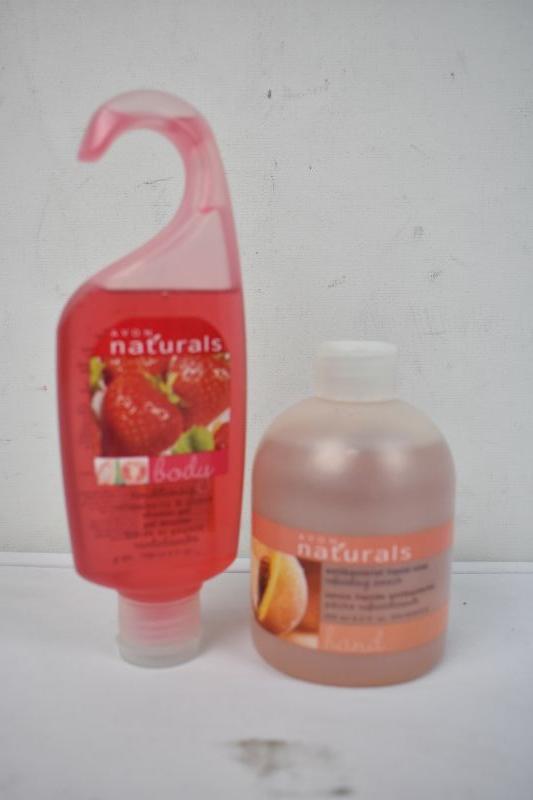2 Avon Naturals Body Soap: Strawberry Guava 5 oz & Peach 8.4 oz - New