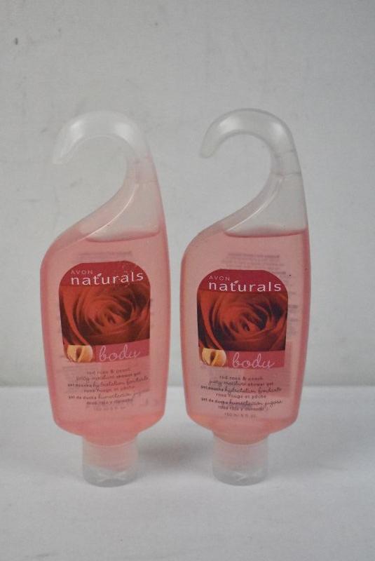 2 Avon Naturals- Red Rose & Peach Juicy Moisture Shower Gel, 5 fl oz each - New