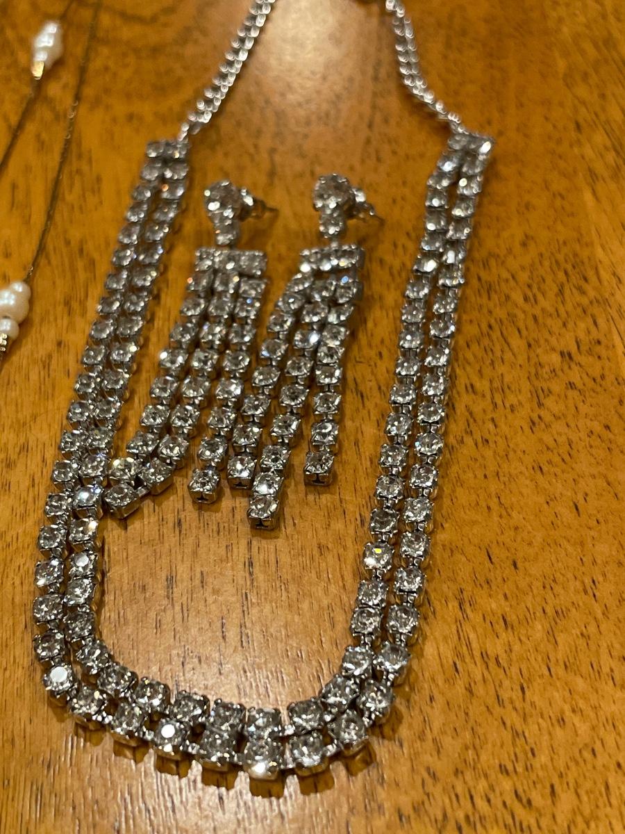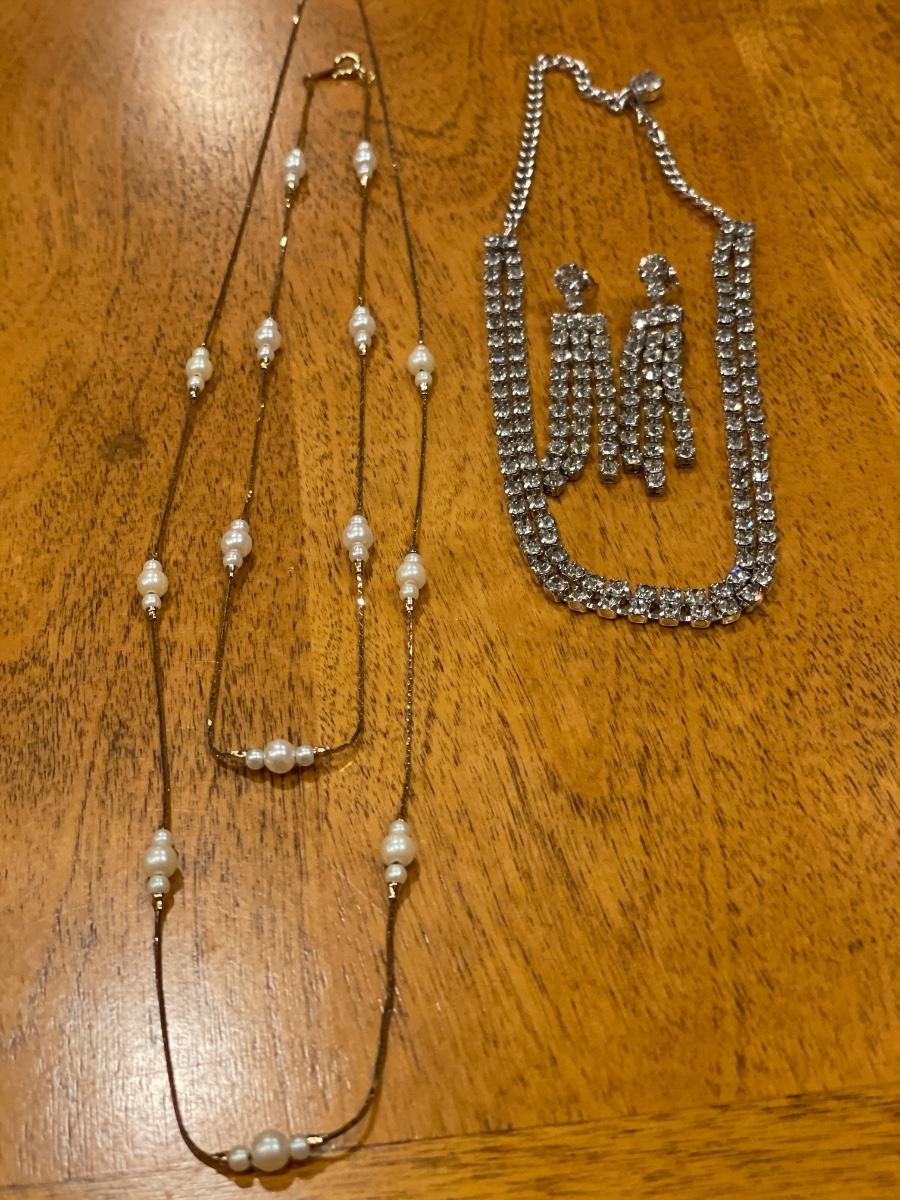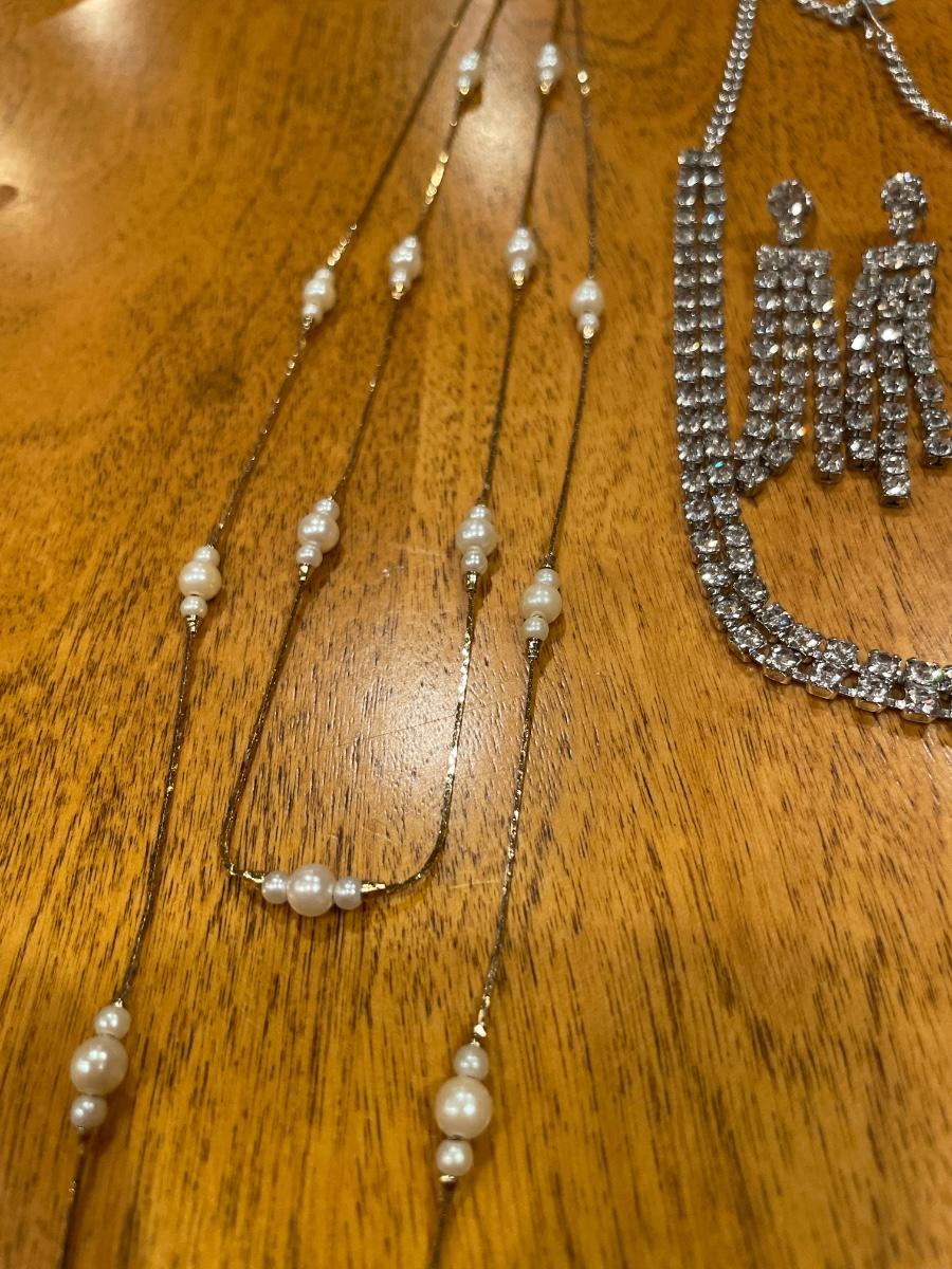 2 Avon vintage necklaces with faux pearls & rhinestone choker and earrings