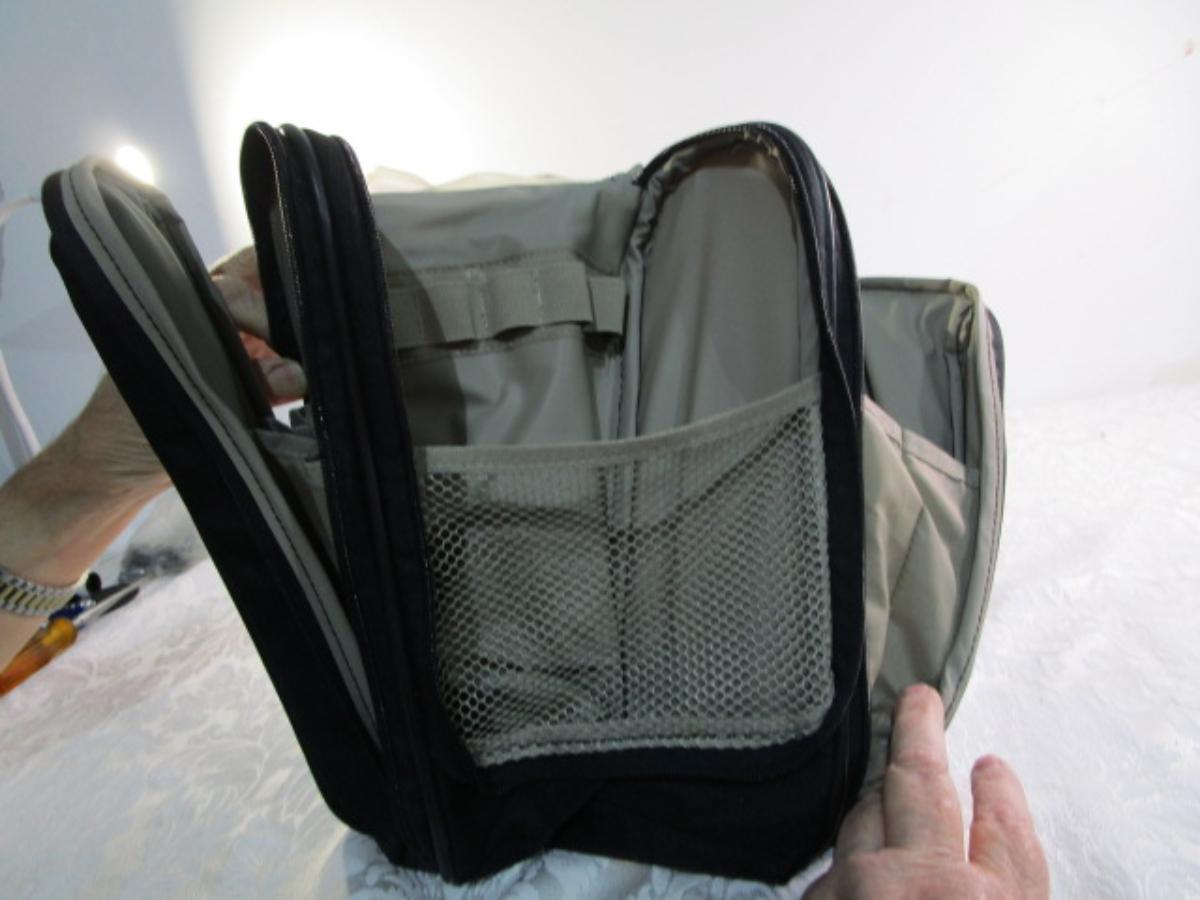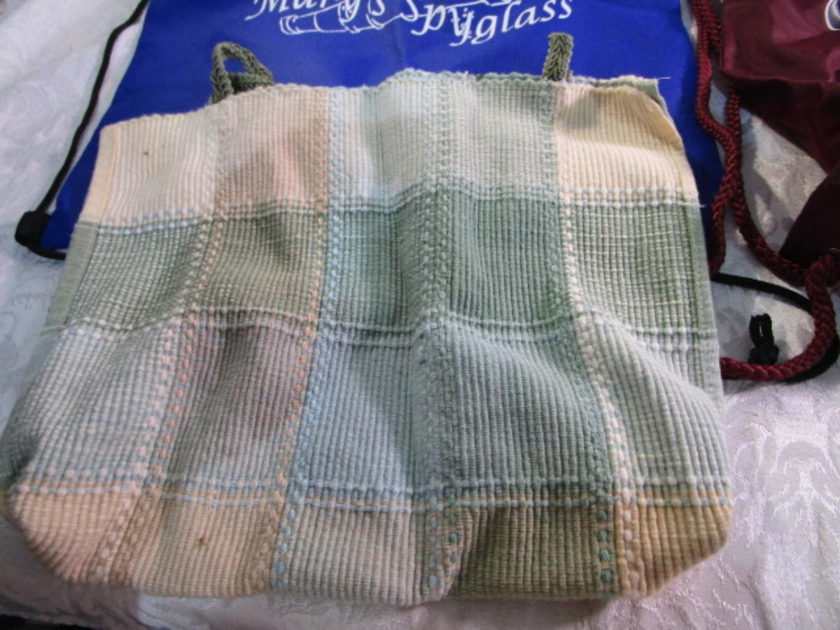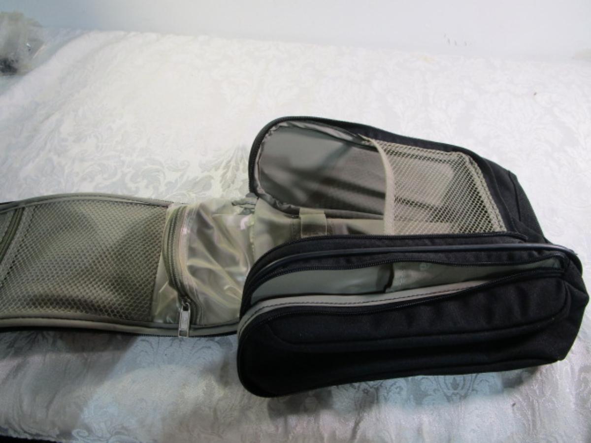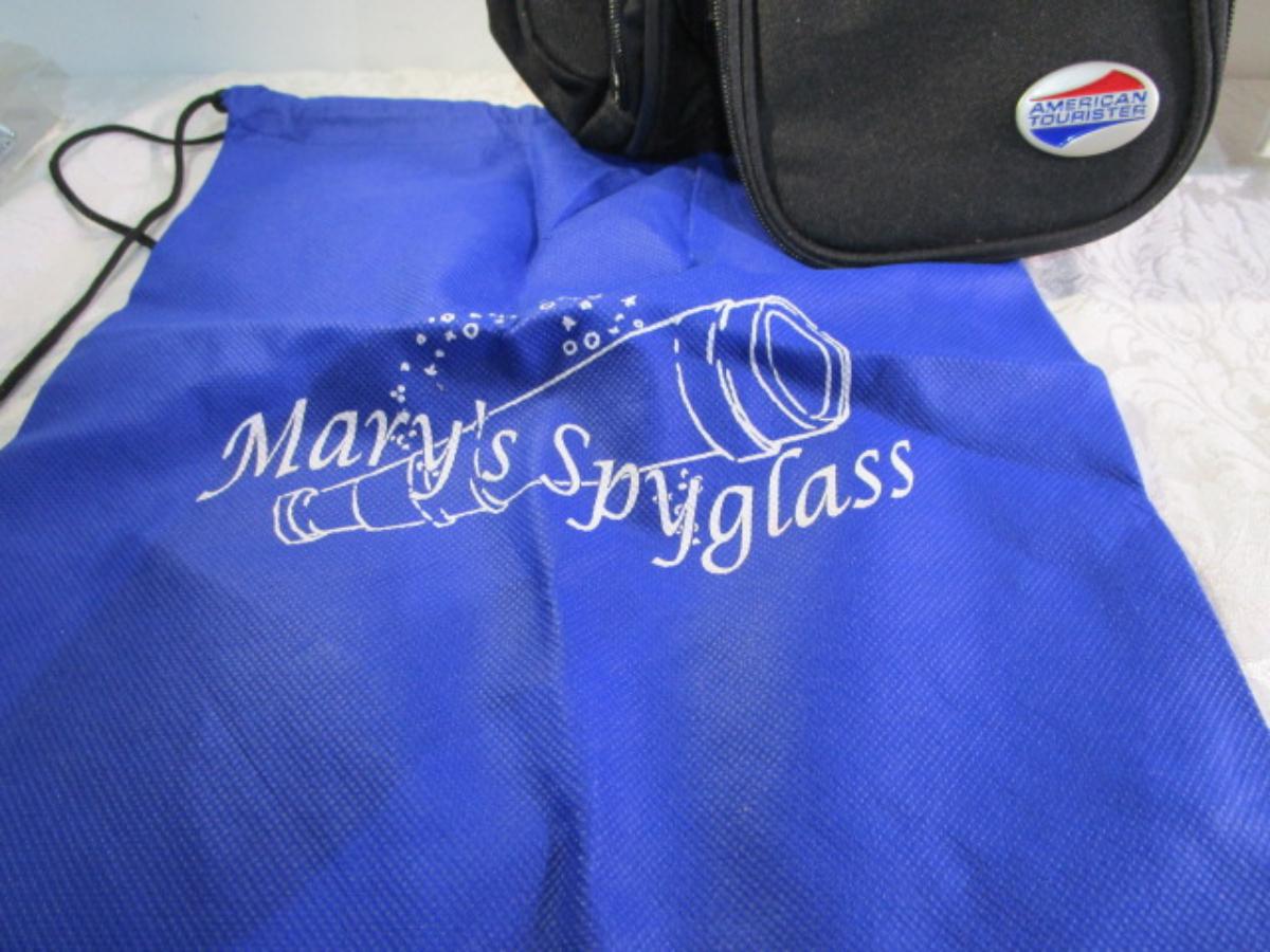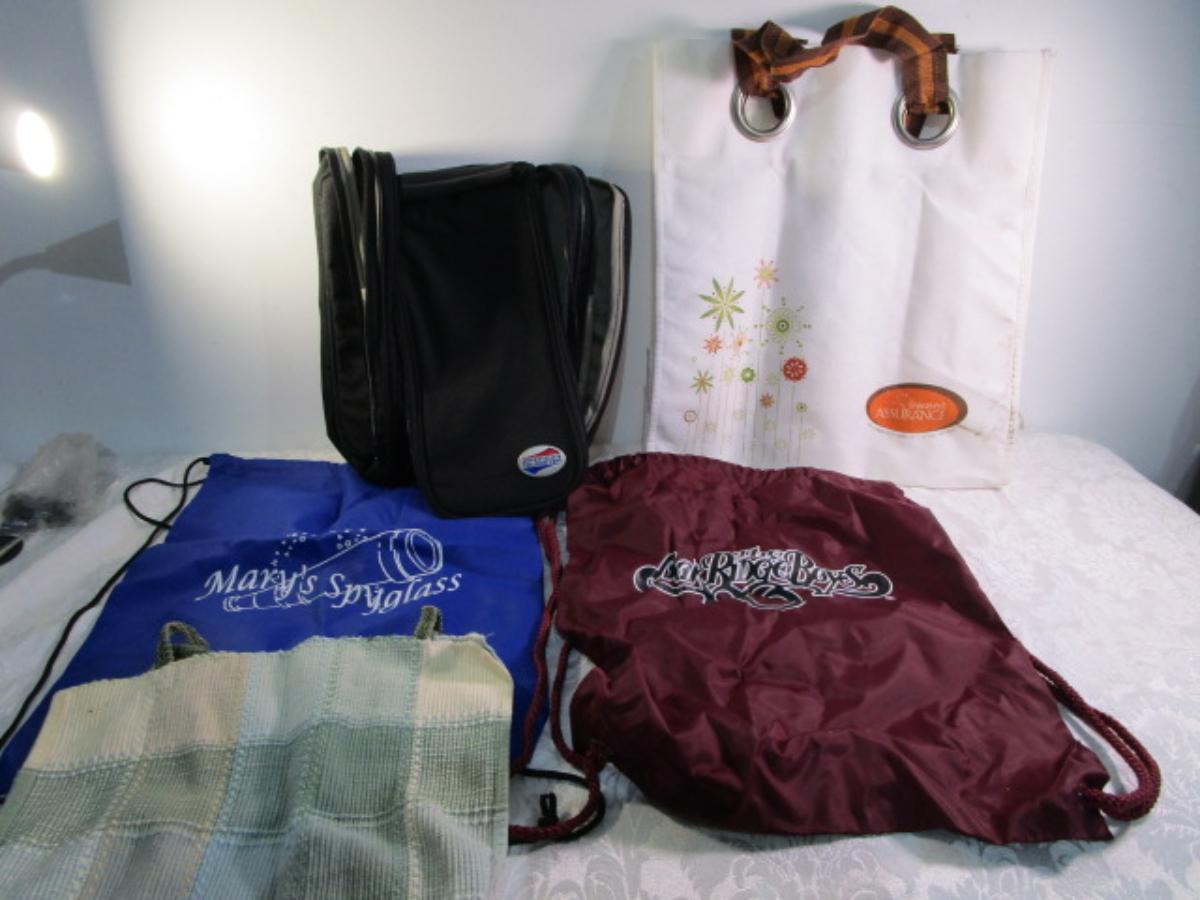 2 backpack bags, small tote bag, large tote bag, American Tourister toiletry bag