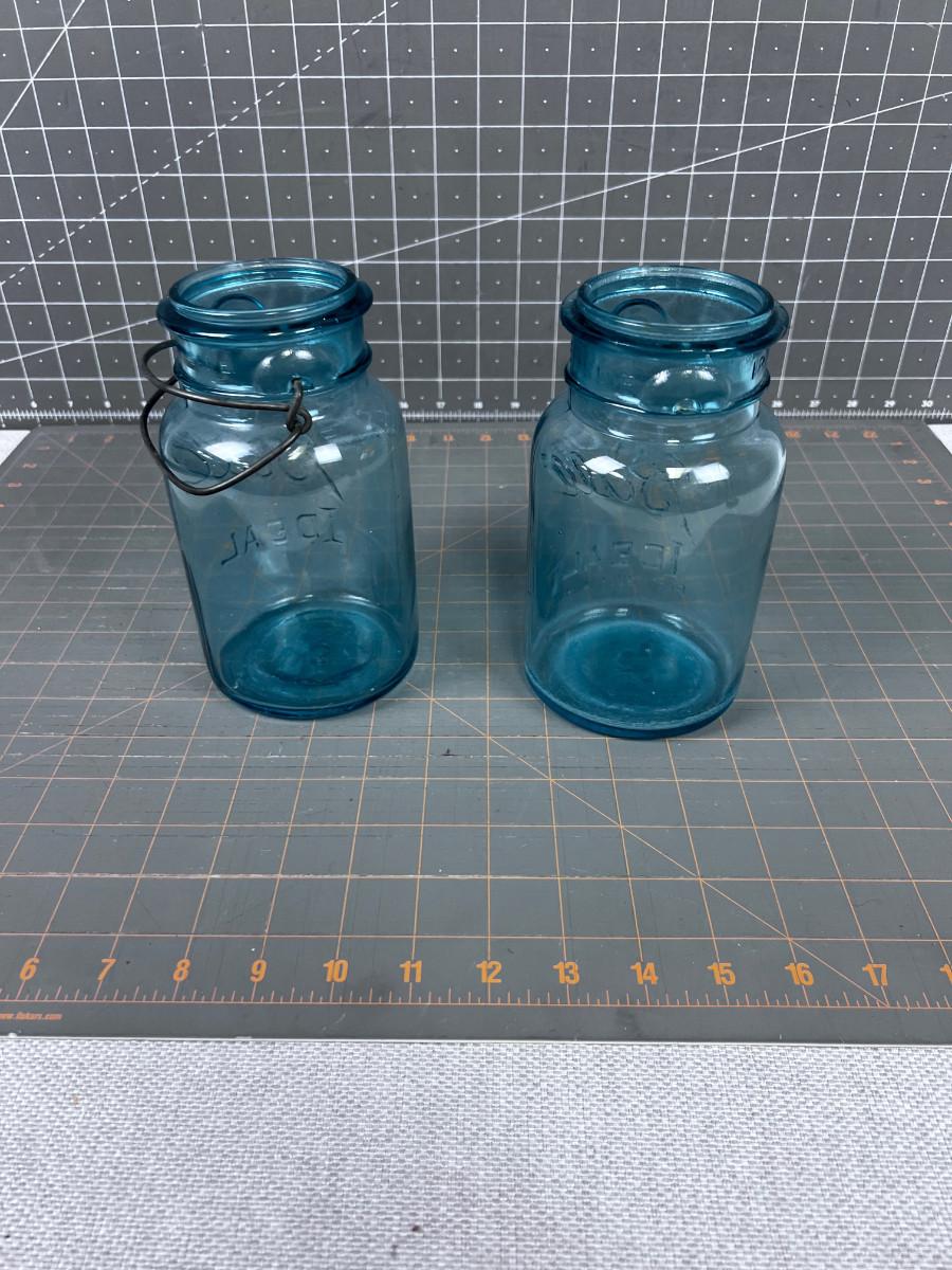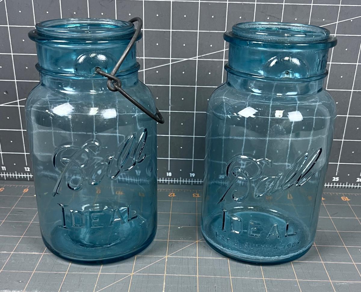 2 Ball Blue IDEAL Glass 1 Quart Each Canning Jars