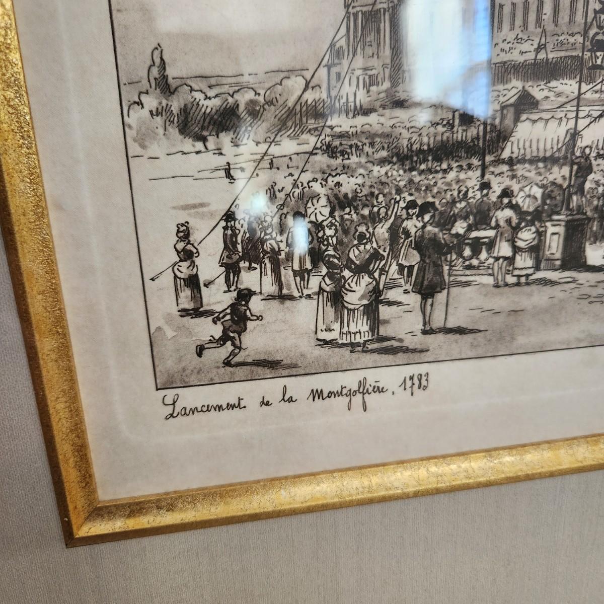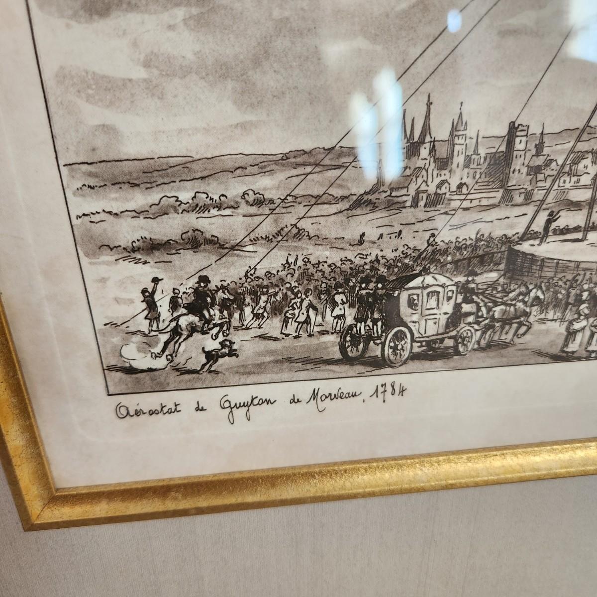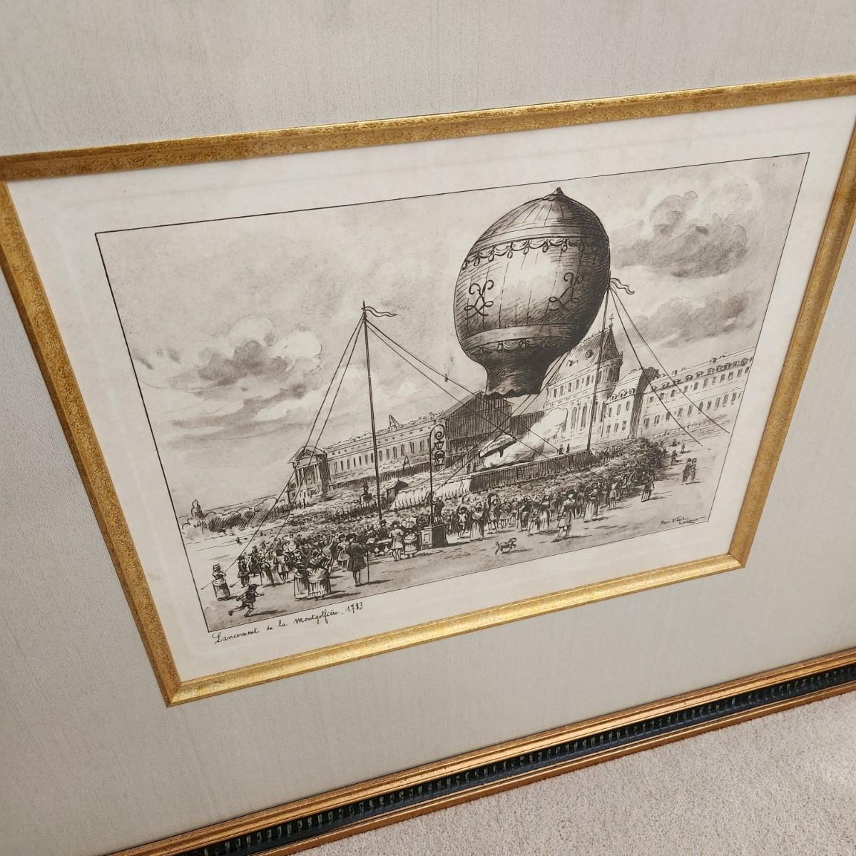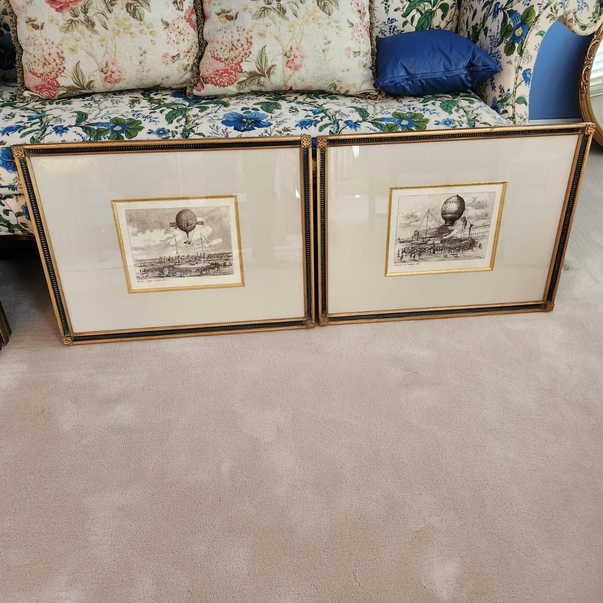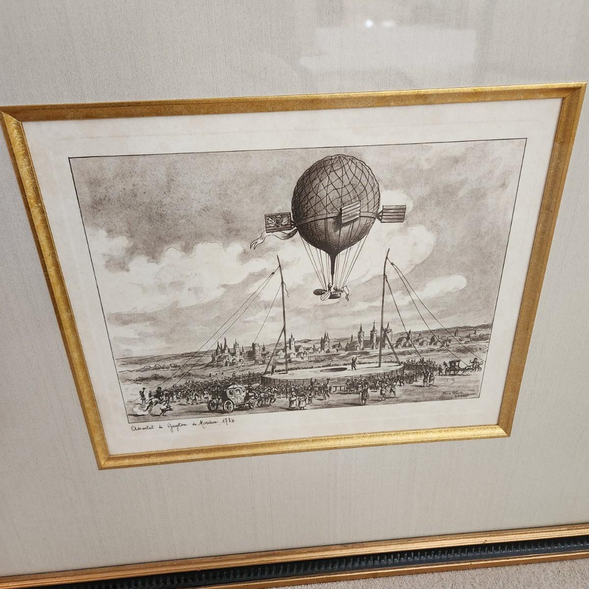 2 Ballooning Prints after Pierre Albert LeRoux 25.5x19.5