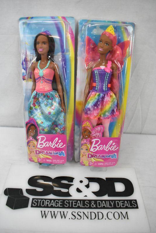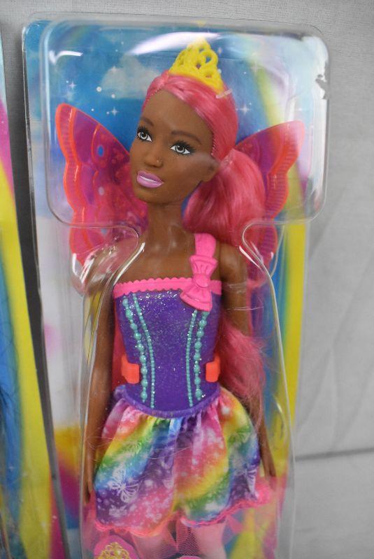 2 Barbie Dreamtopia Princess Dolls: Pink Hair, With Wings and Tiara - New