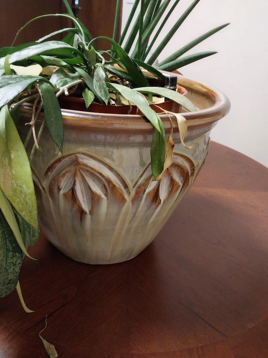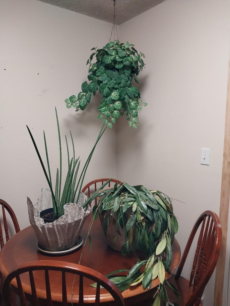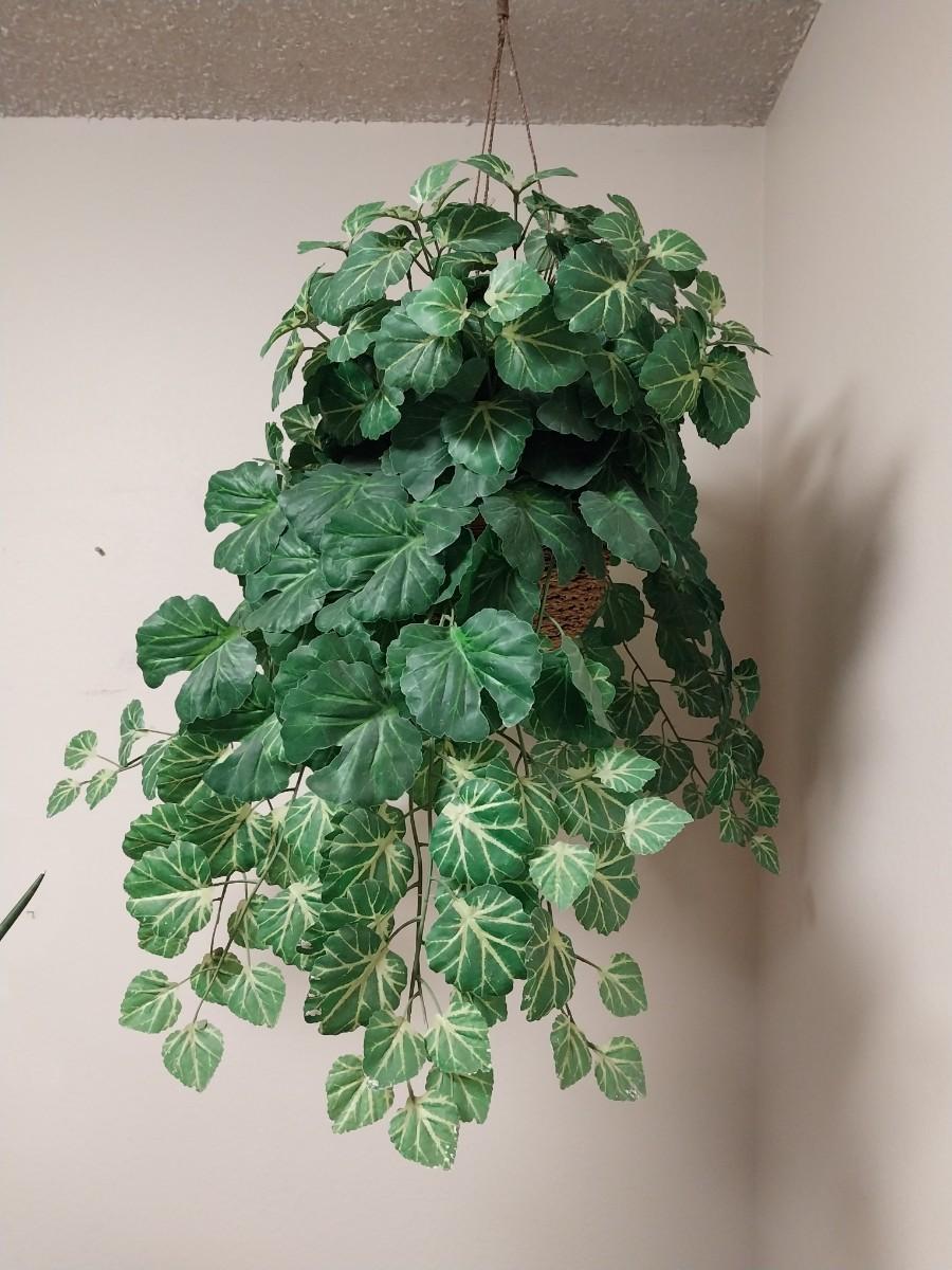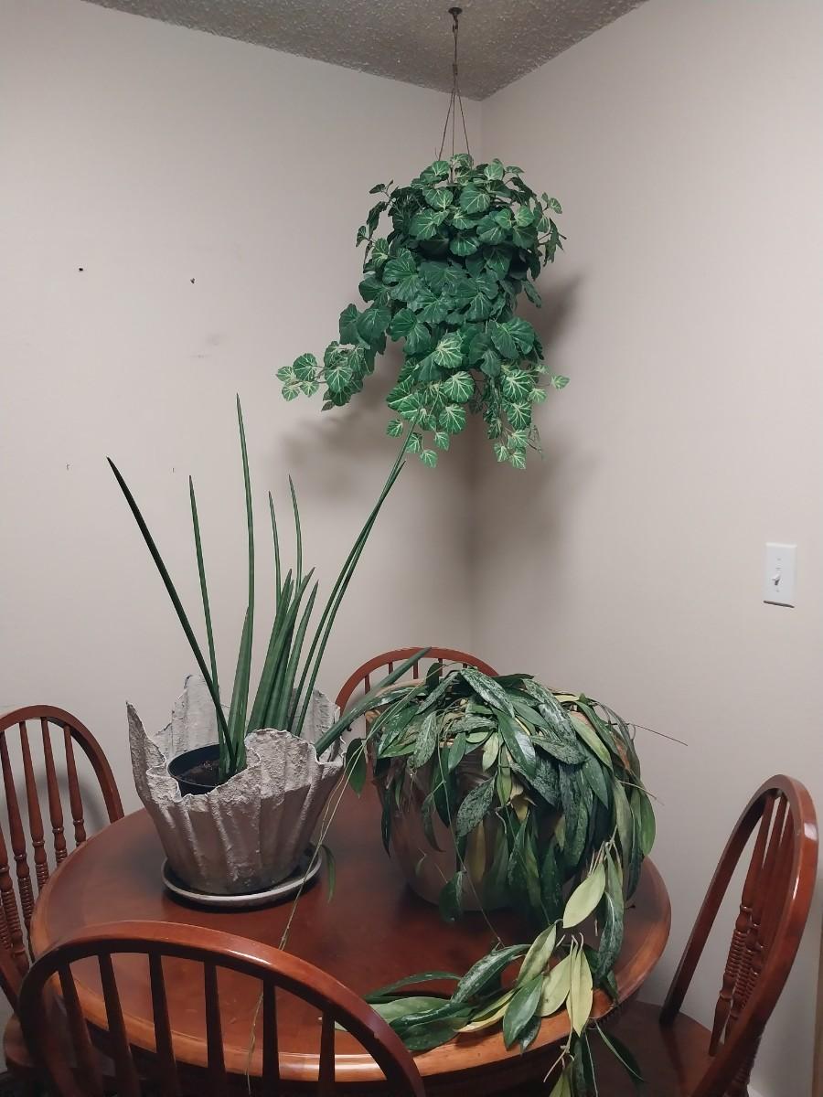 2 (BARELY) LIVE PLANTS AND 1 FAUX HANGING PLANT