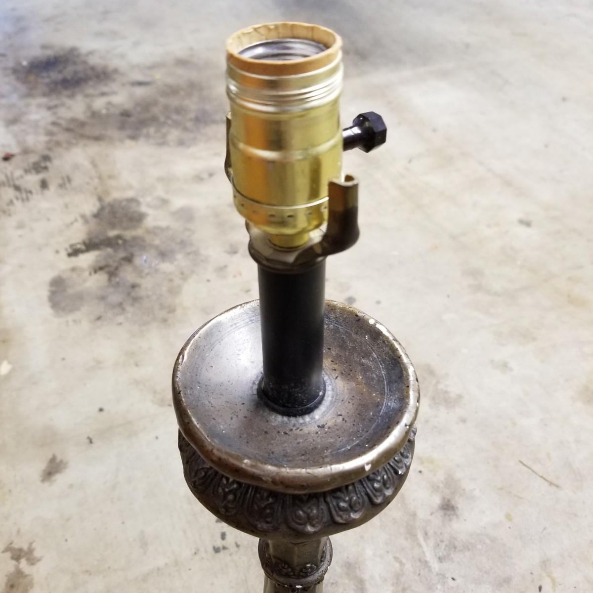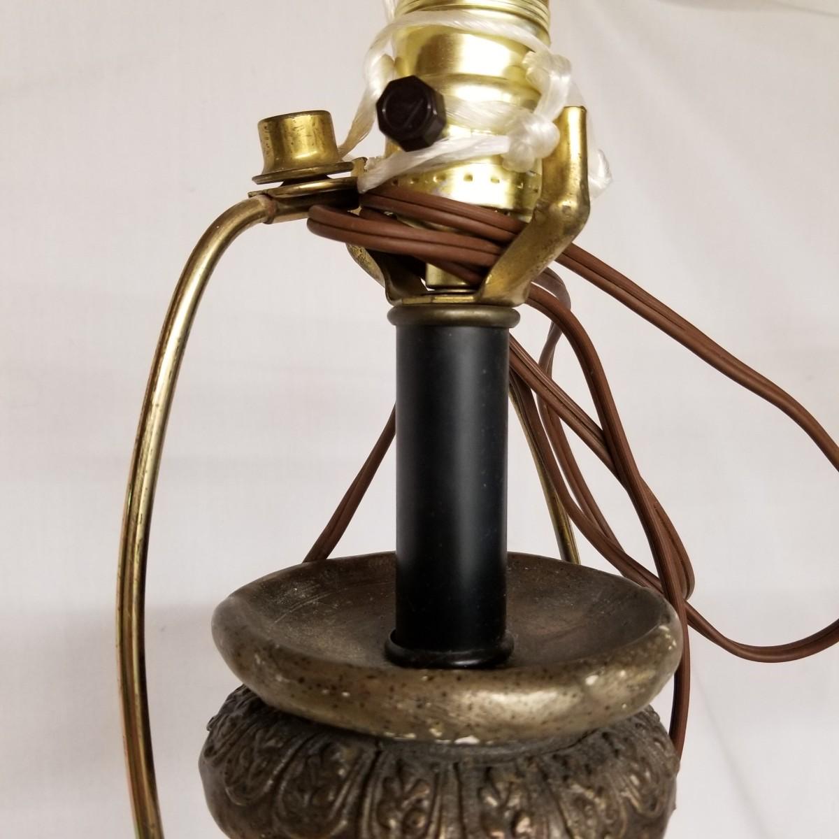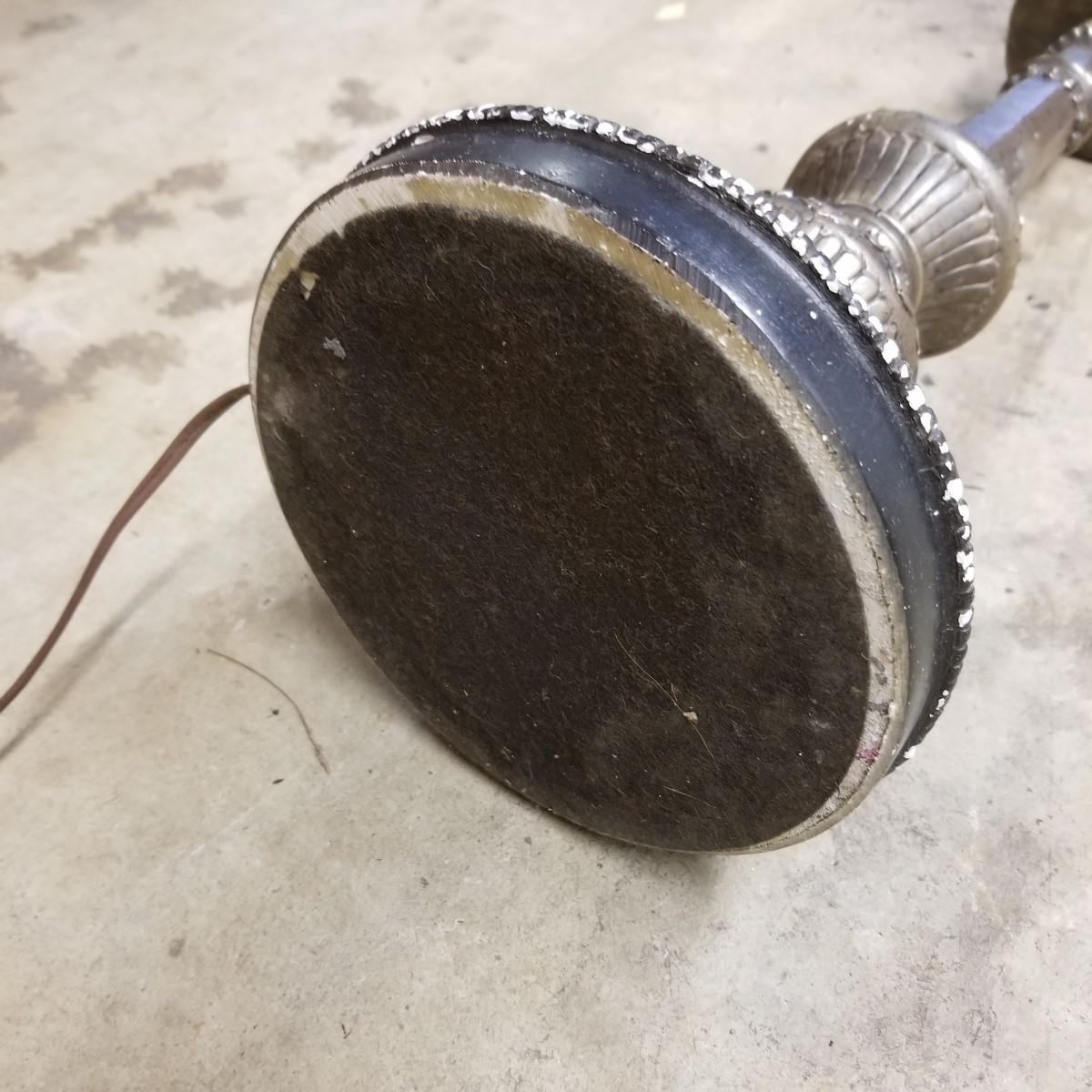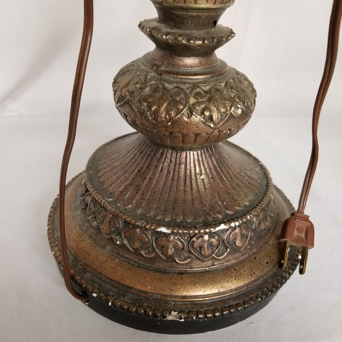 A pair of baroque inspired lamp bases.  Items appear to be plaster, have numerous chips and dents. Tested working. Measures approximately 7" x 36" See photos for detail.  Local pickup only.