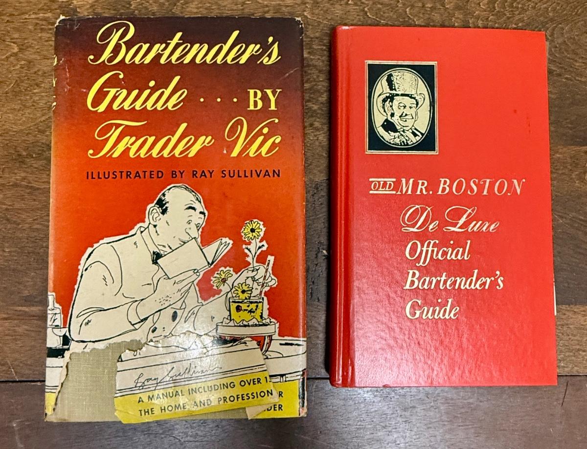 2 Bartending Books, plus stickers - Trader Vic & Old Mr. Boston Recipe Books