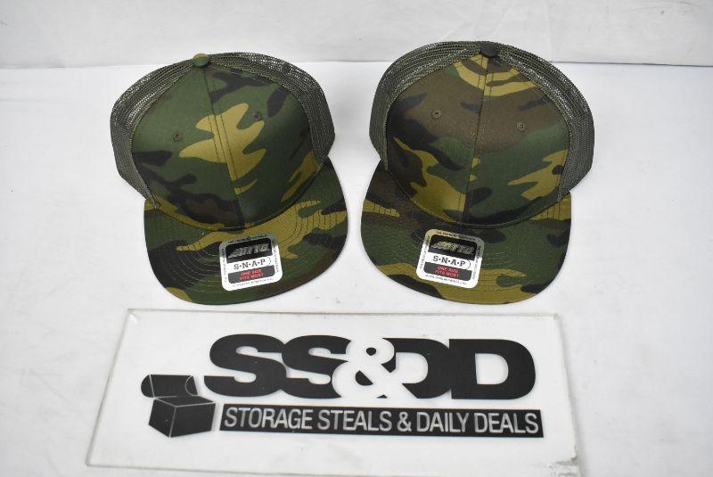 2 Baseball Style Hats, Green Camouflage, Snapback One Size Fits Most - New