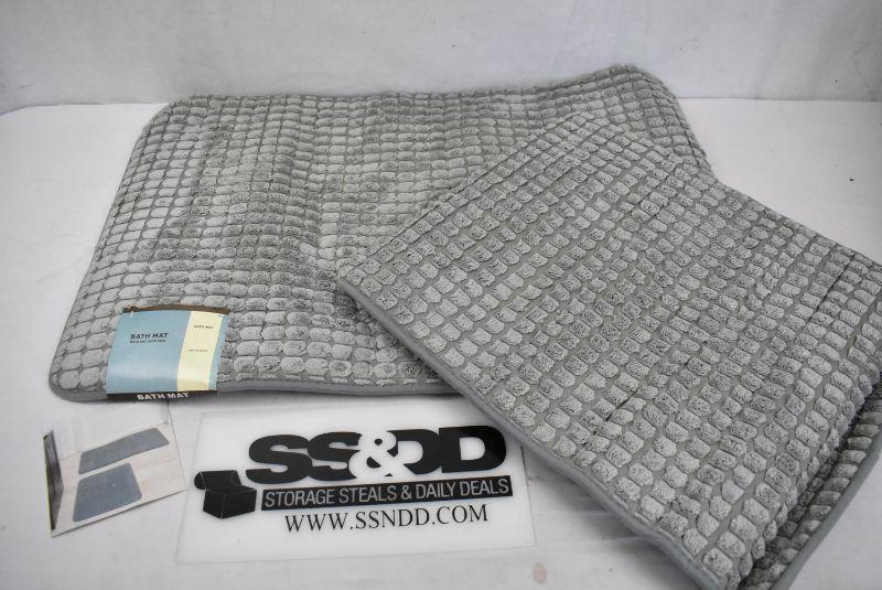 2 Bath Mats Blue/Gray. 17x24 & 20x31, anti skid back - New