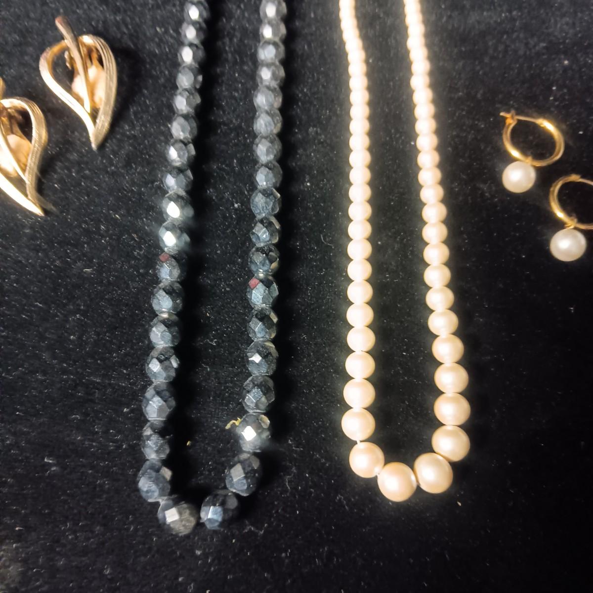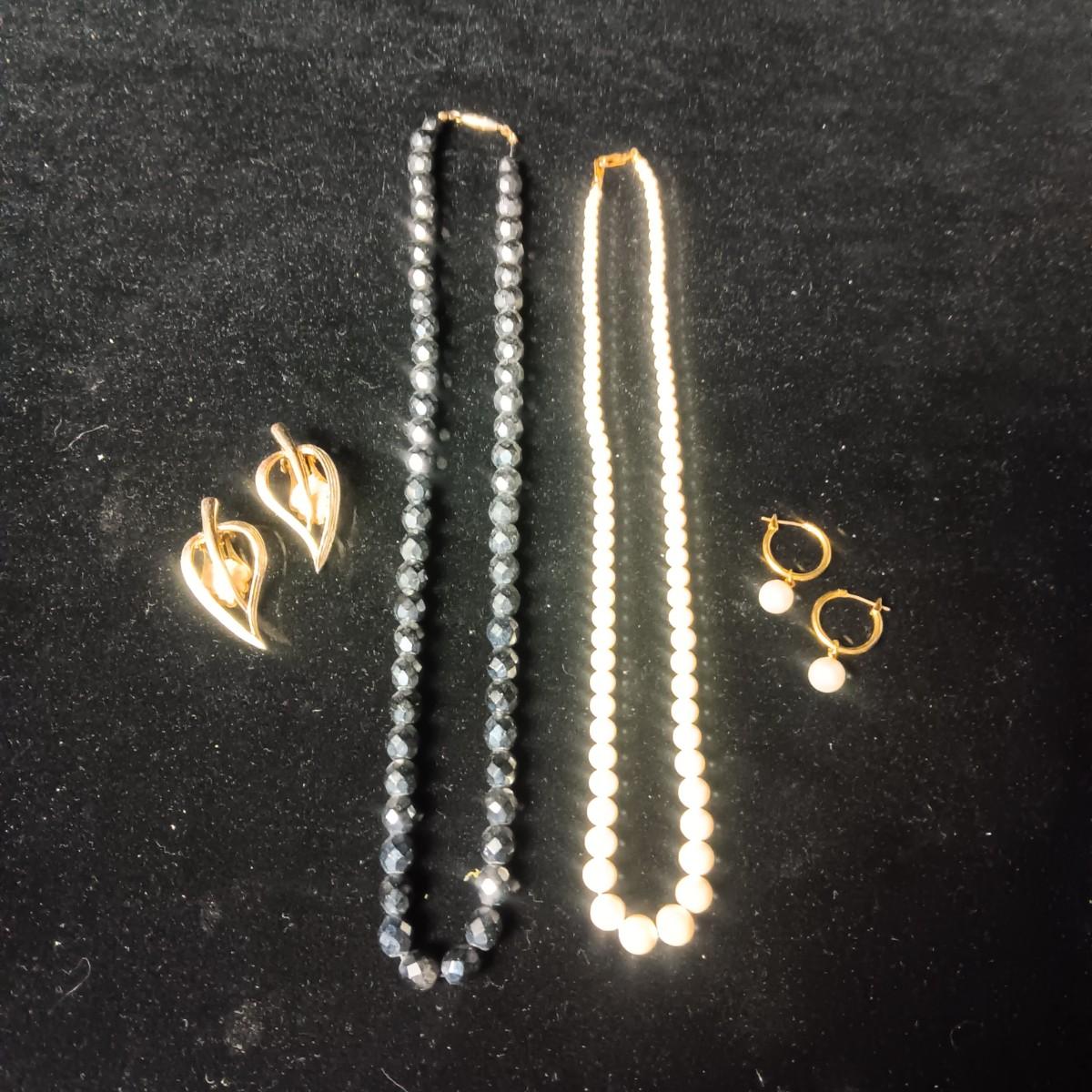 2 BEADED NECKLACES, PIERCED AND CLIP ON EARRINGS