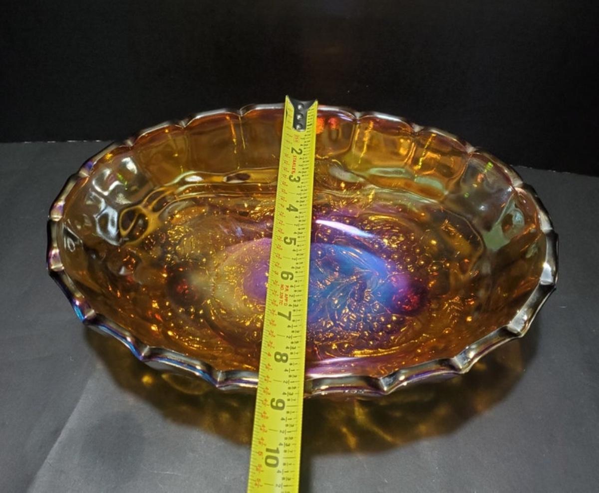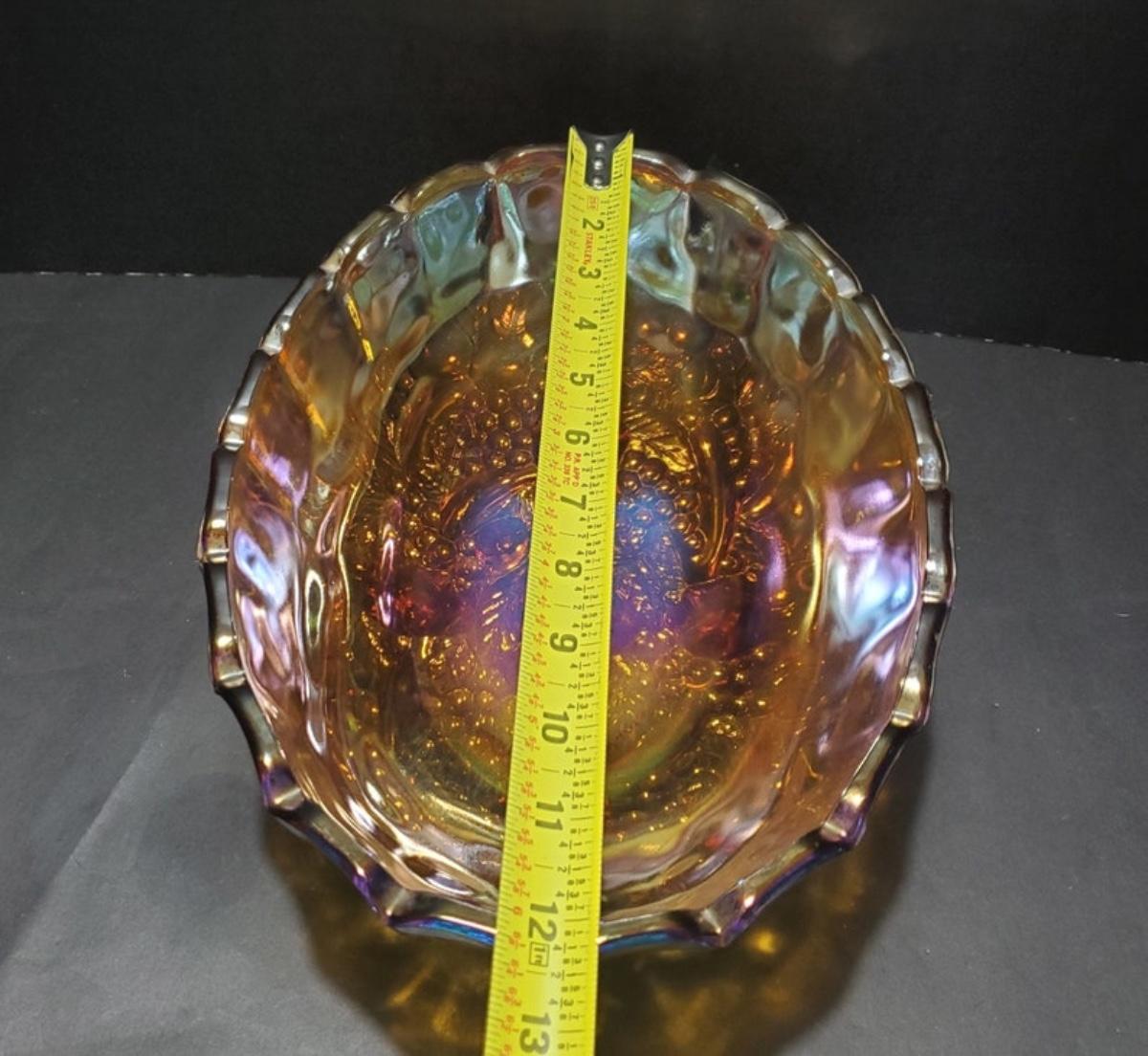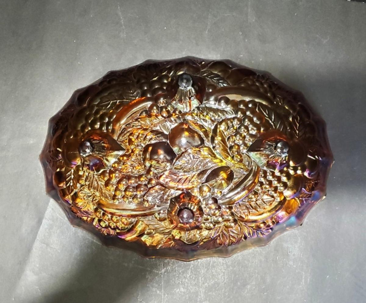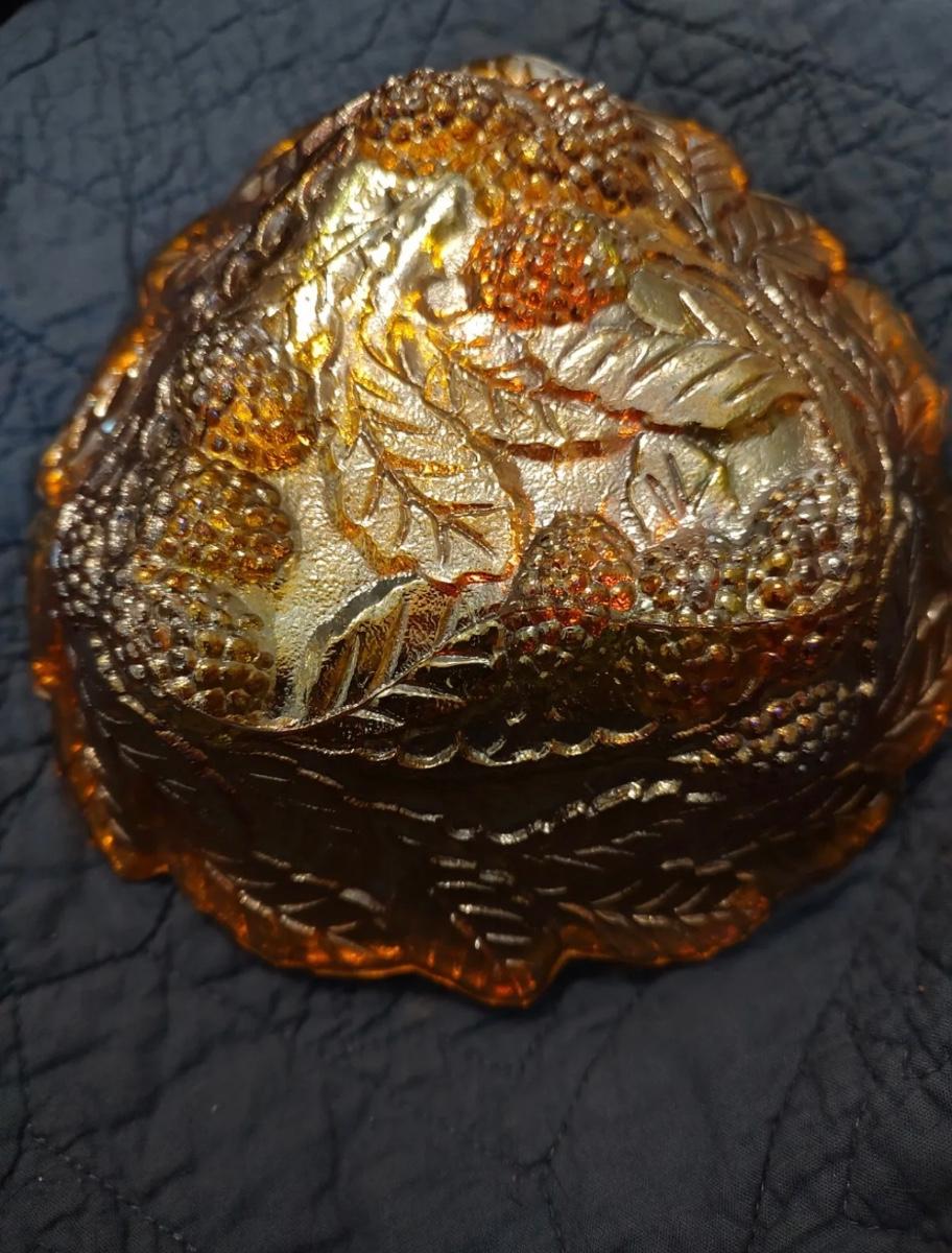 2 pieces of vintage carnival glass. I harvest bowl and a marigold triangular bowl. Very pretty.