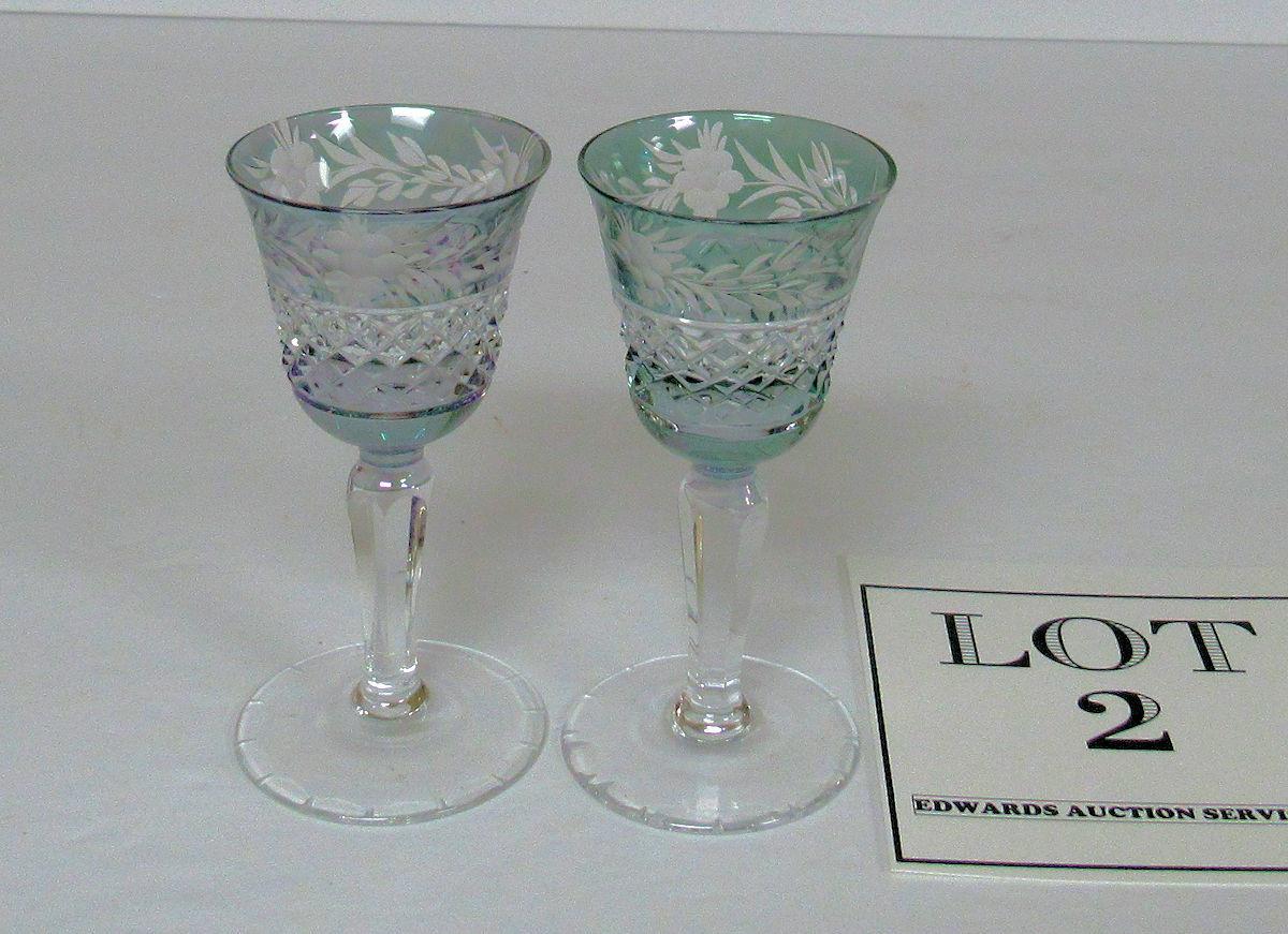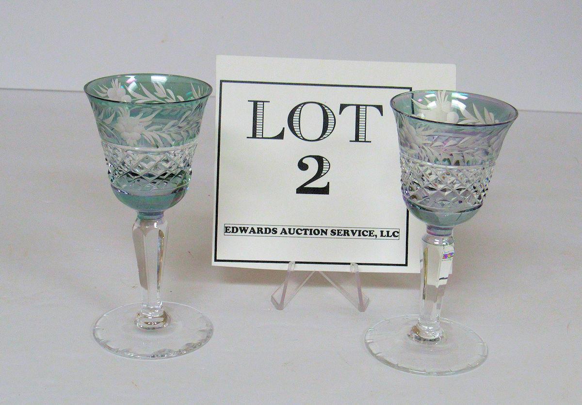 2 Beautiful Cut to Clear Cordials Unmarked, Probably Bohemian/Czechoslovakia