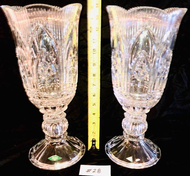 2 vintage Shannon Crystal vases 14 in tall 24% lead crystal made in Slovakia designs of Ireland