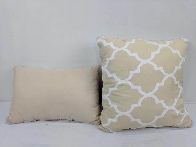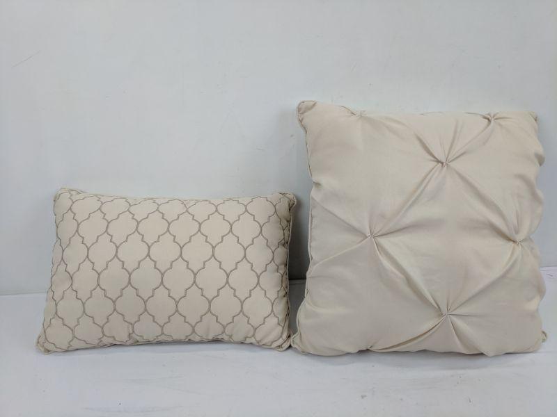 2 Beige Decorative Pillows, 16" x 1" & 17" x 17"