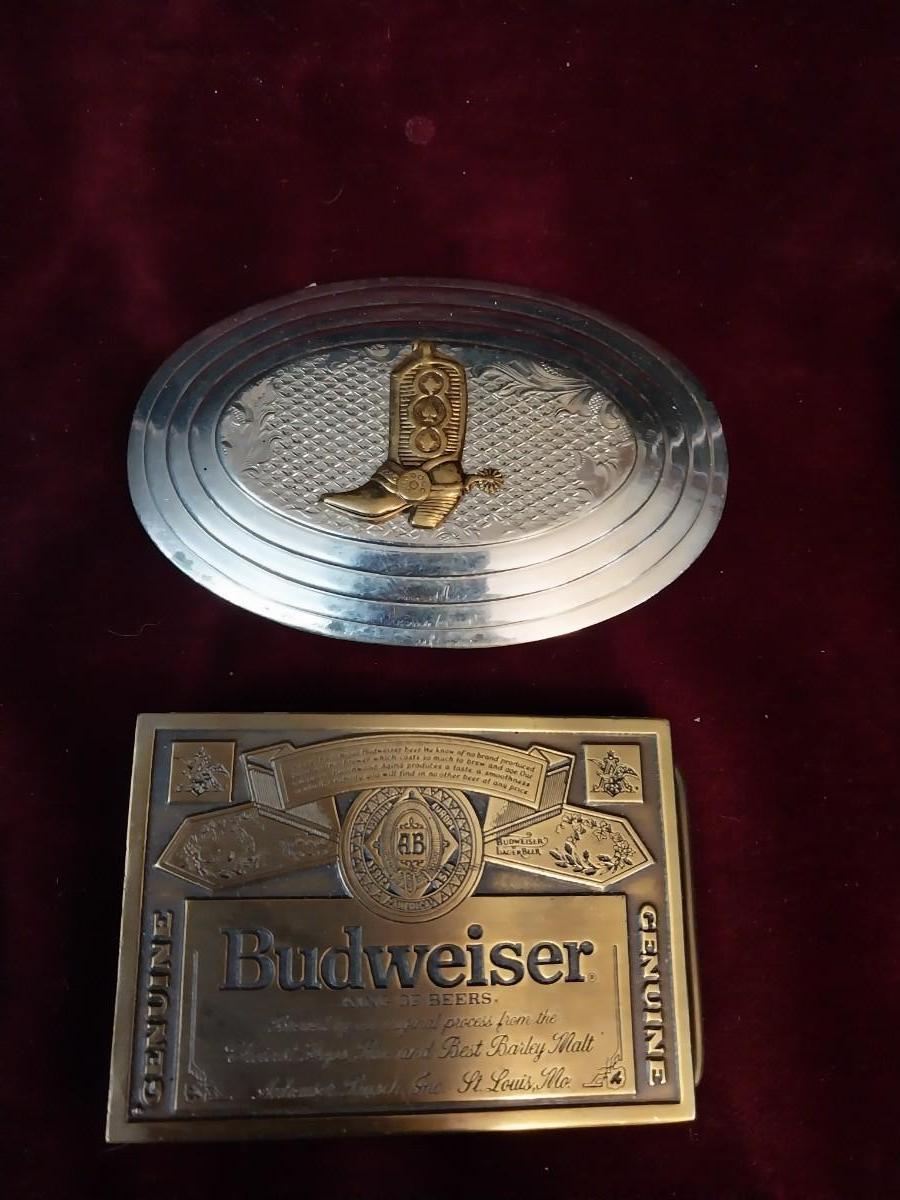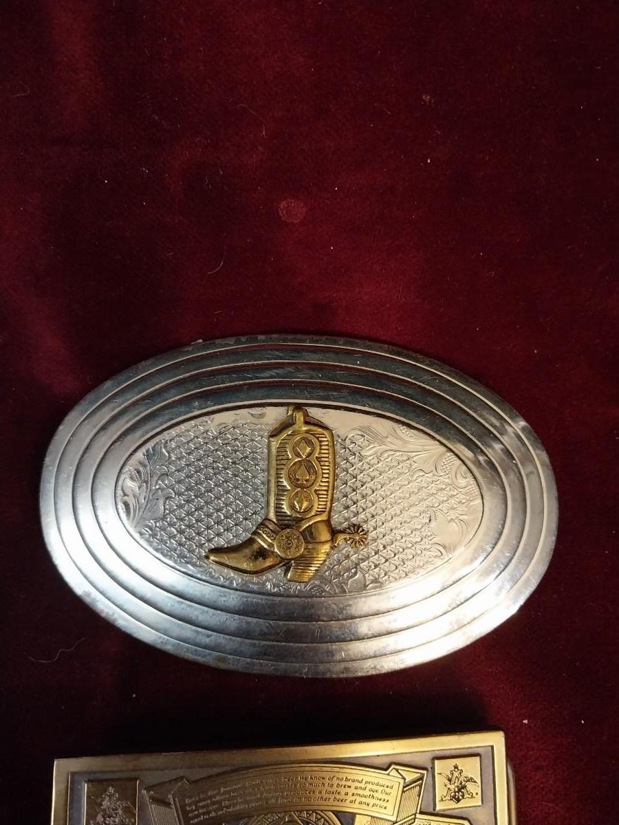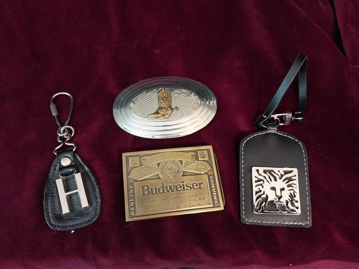 2 BELT BUCKLES, LUGGAGE TAG AND A KEYCHAIN