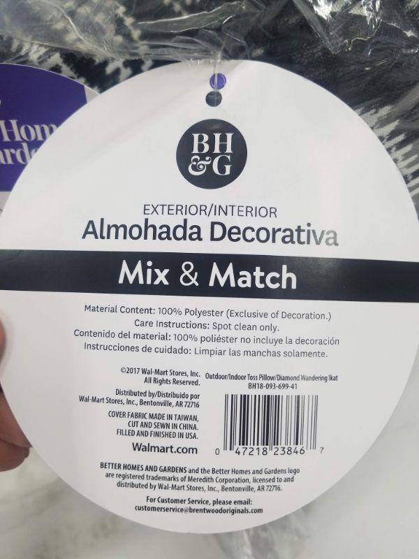 2 BH&G Pillows Indoor/Outdoor 14" x 19" Black & White Ikat Pattern - New
