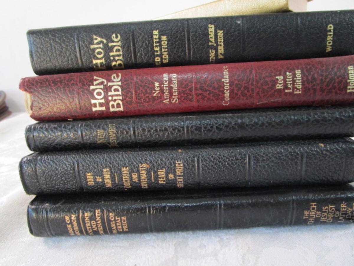 2 Bibles, 2 Triple Combinations, 1 New Testament, 1 pocket New Testament with Proverbs