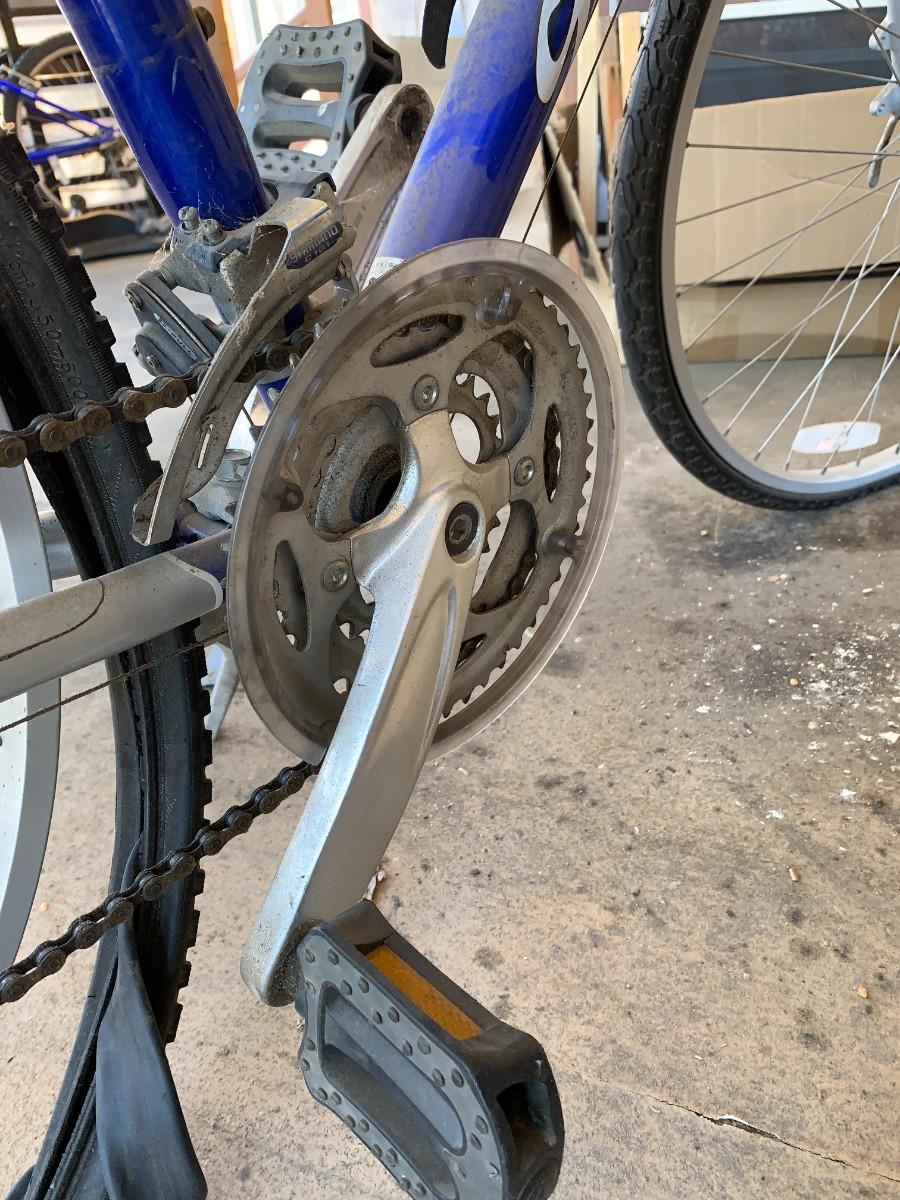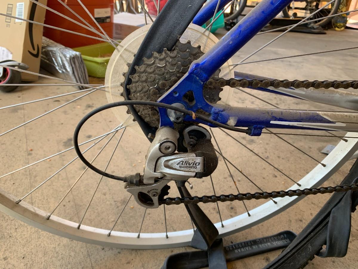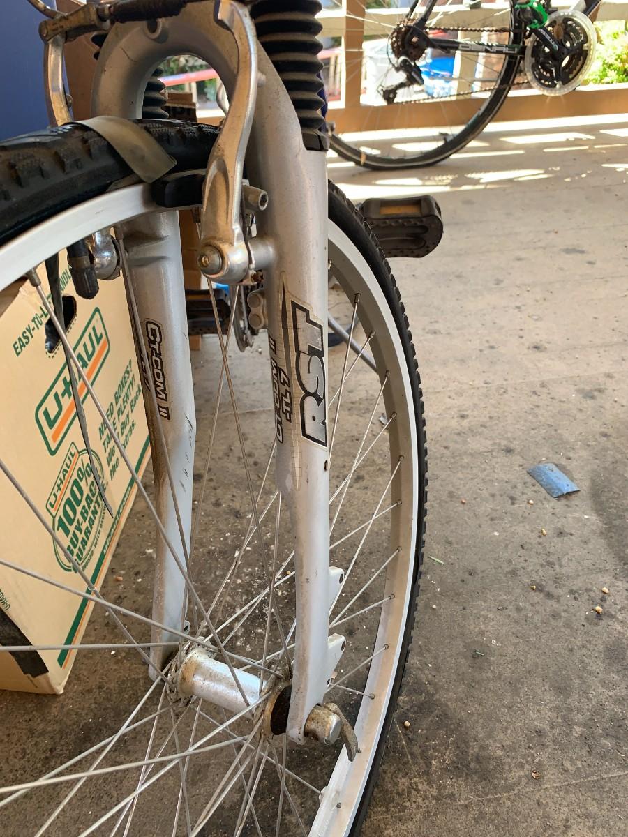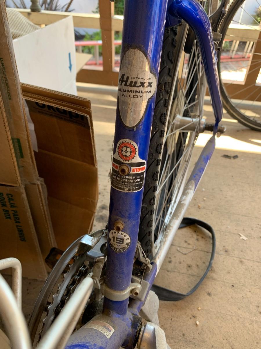Giant hybrid bike, Cypress DX 19 inch frame. SRAM-MRX+ shifters. CT-COM2 TL7RST shock forks. Shimano Alivio derailleur. Standard pedals. Rusty quick release on both wheels, needs tubes. Shimano FHRM408 wheels. Ridden once.