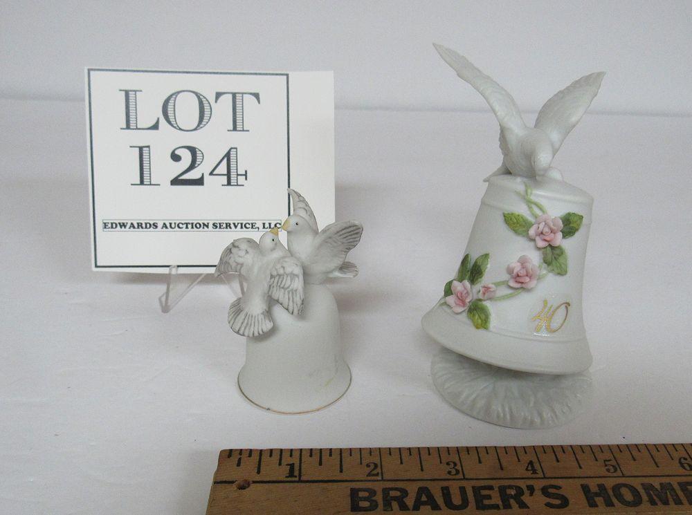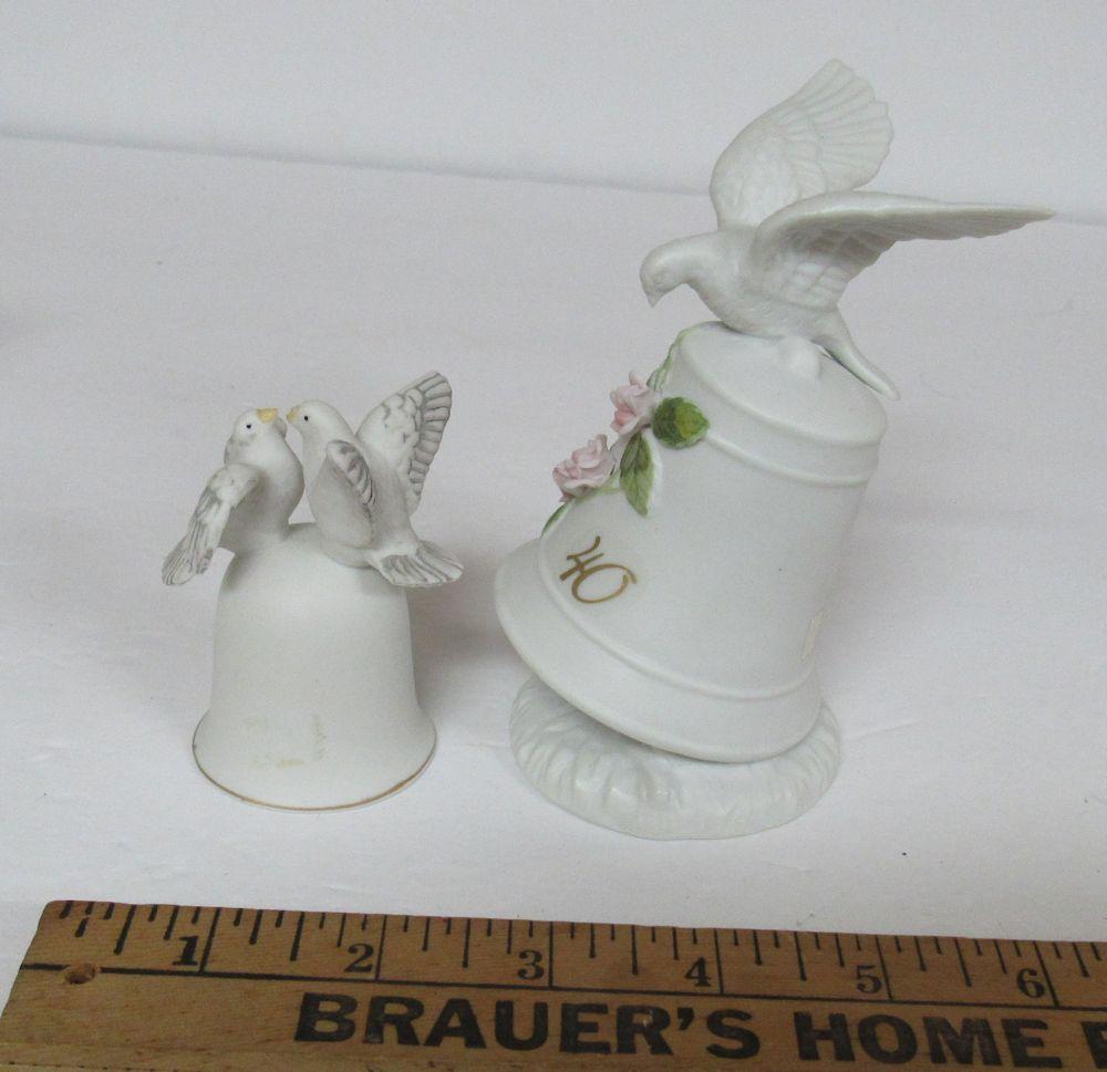 2 Bisque Dove Bells, One is Touch of Rose, Roman, 1986