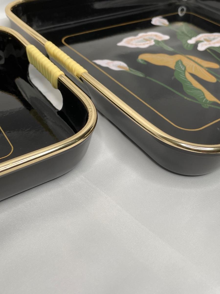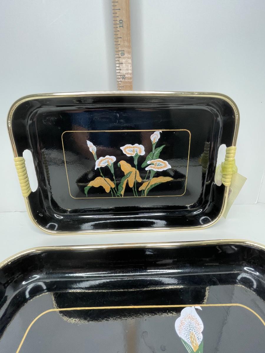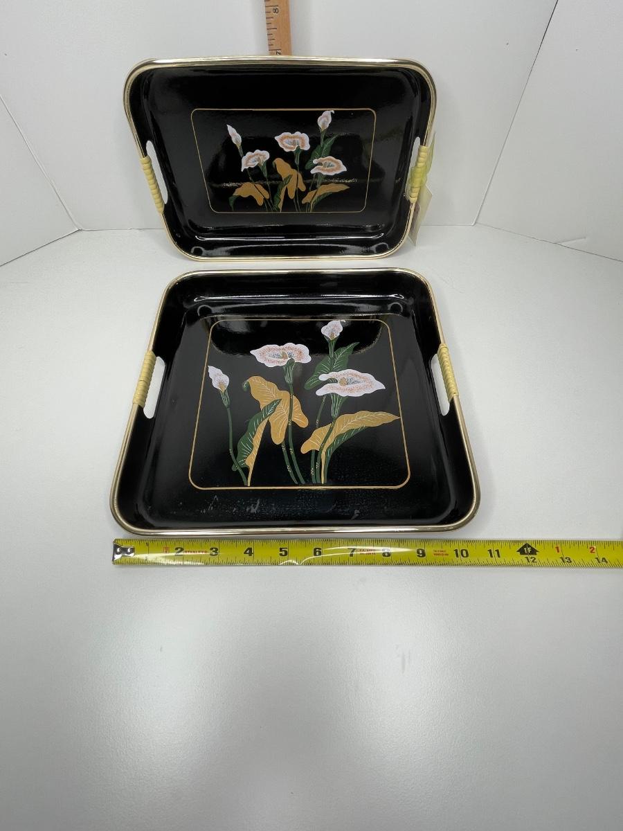 Vintage 2 Black Lacquer Trays with wrapped handles