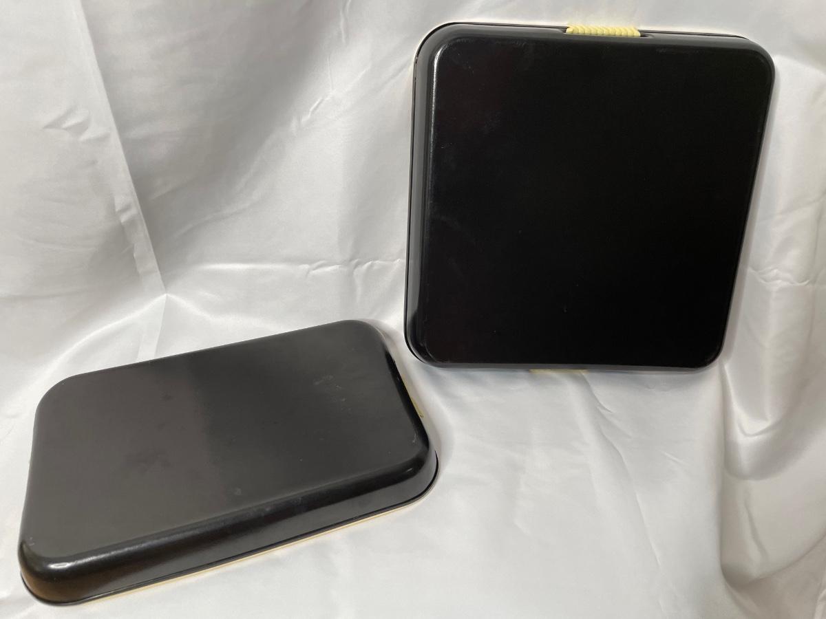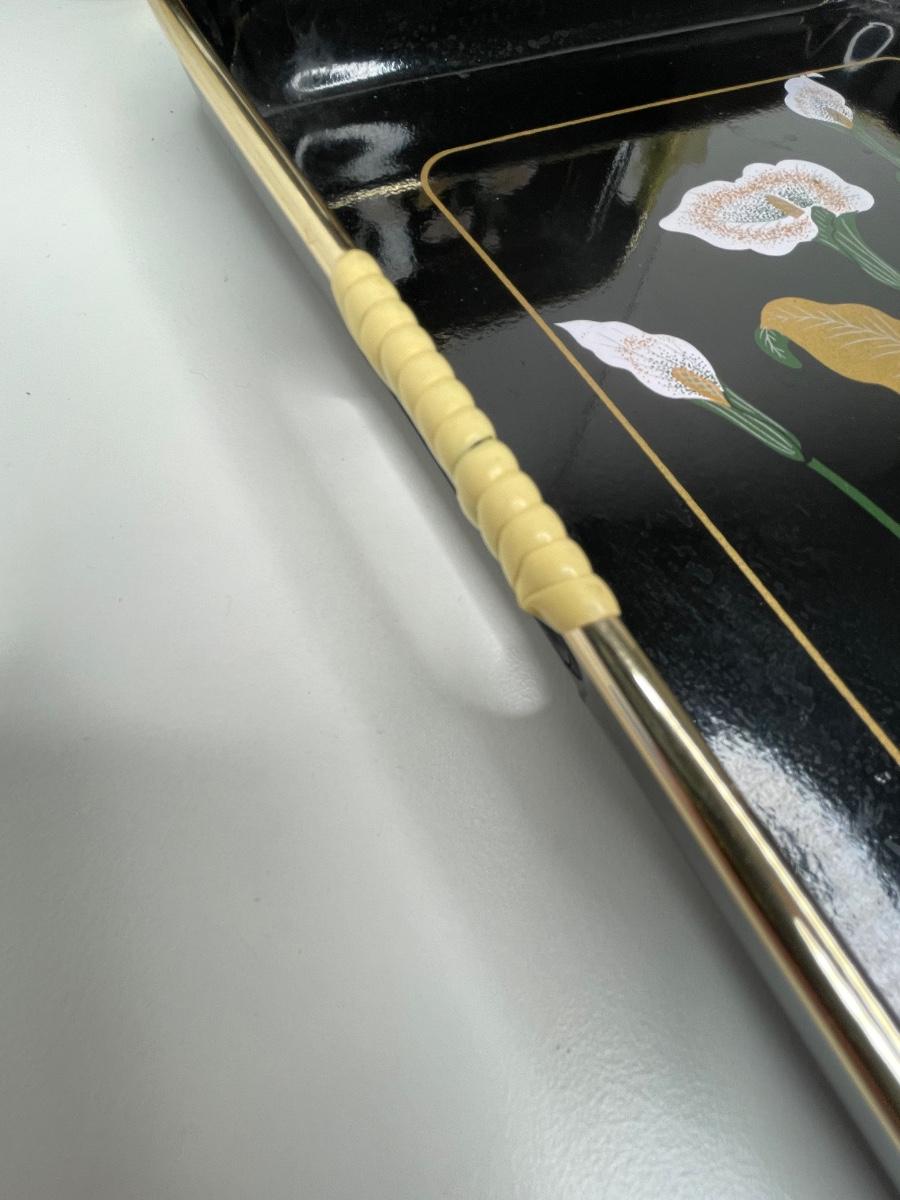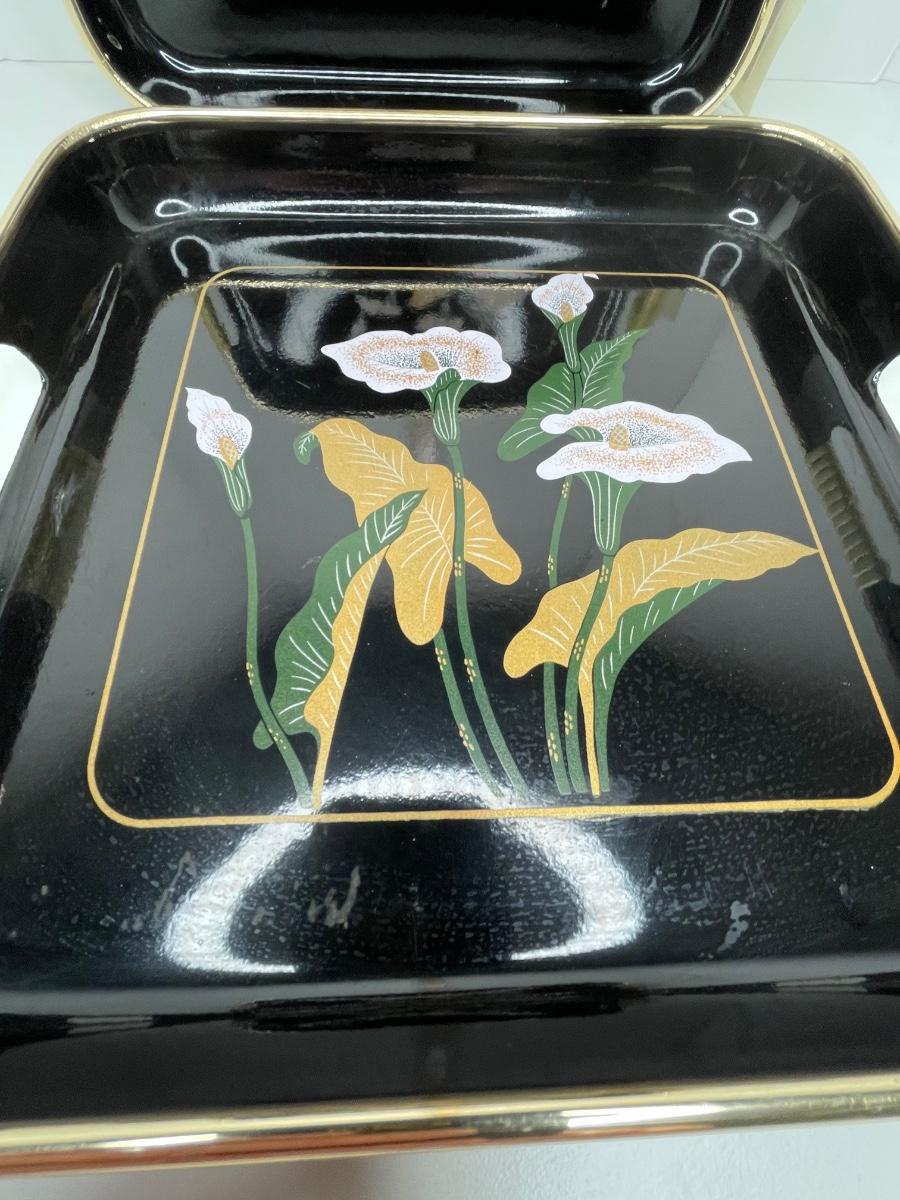 Vintage 2 Black Lacquer Trays with wrapped handles