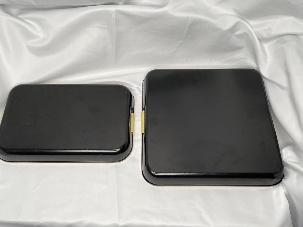 Vintage 2 Black Lacquer Trays with wrapped handles