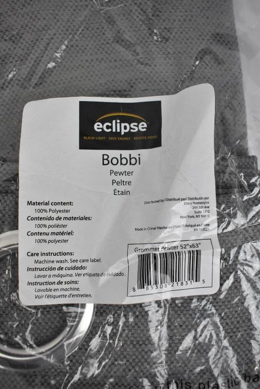 2 Blackout Curtain Panels, Pewter Gray. Eclipse Bobbi Grommet 52"x63" each - New