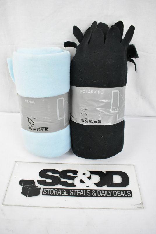 2 Blankets from Ikea. 1 light blue, 1 black. 51"x67" each - New
