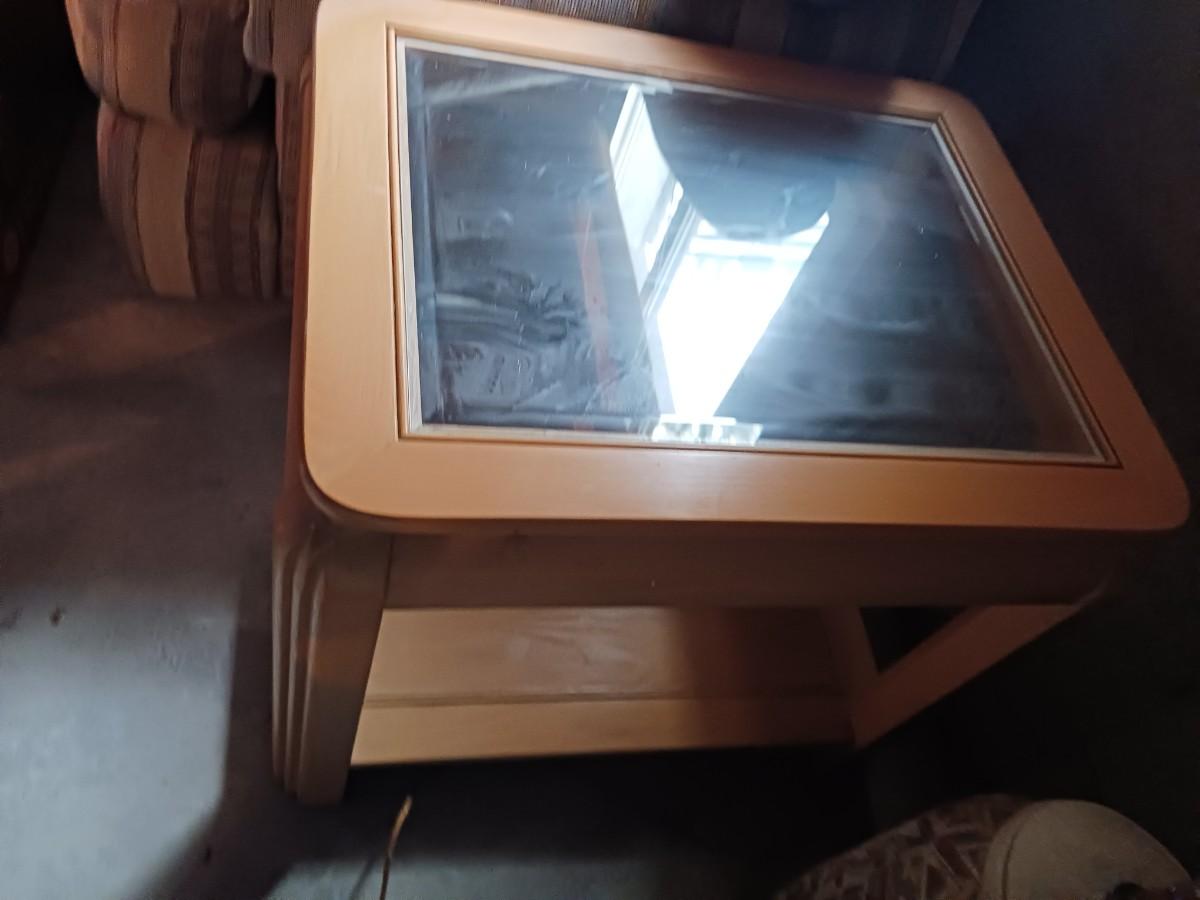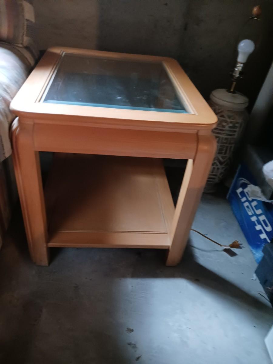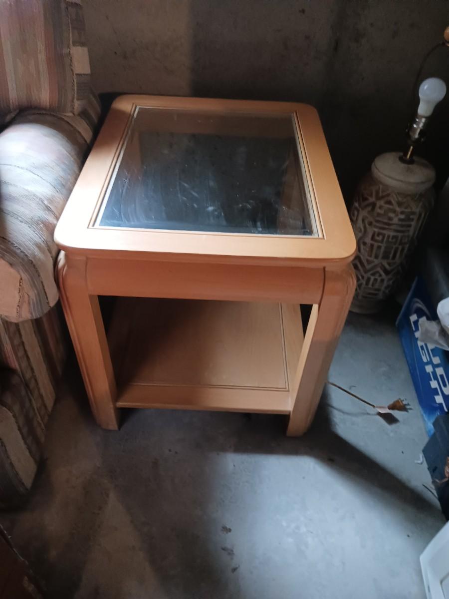 2 BLOND WOOD END TABLES WITH GLASS TOPS