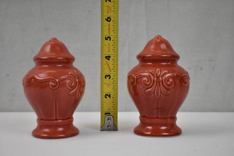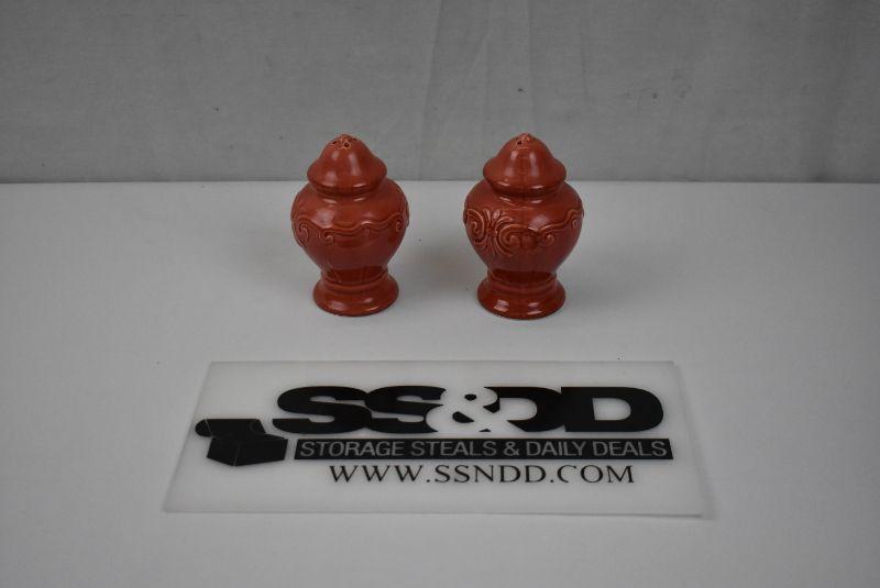 2 Blood Orange Salt and Pepper Shakers - Fleur De Lis-esque design