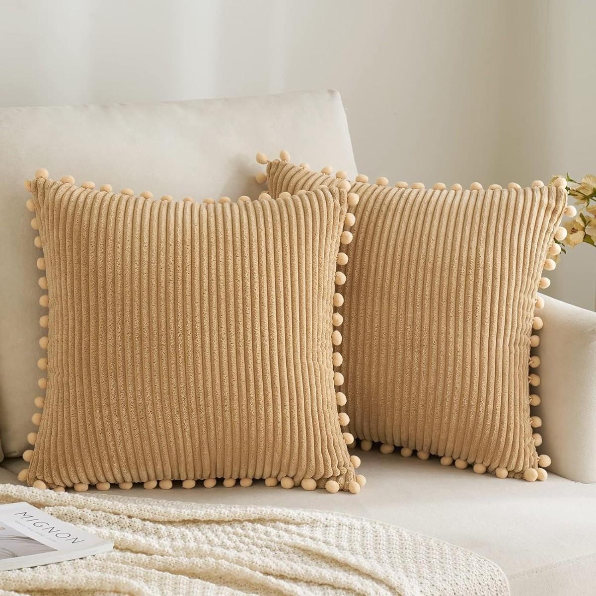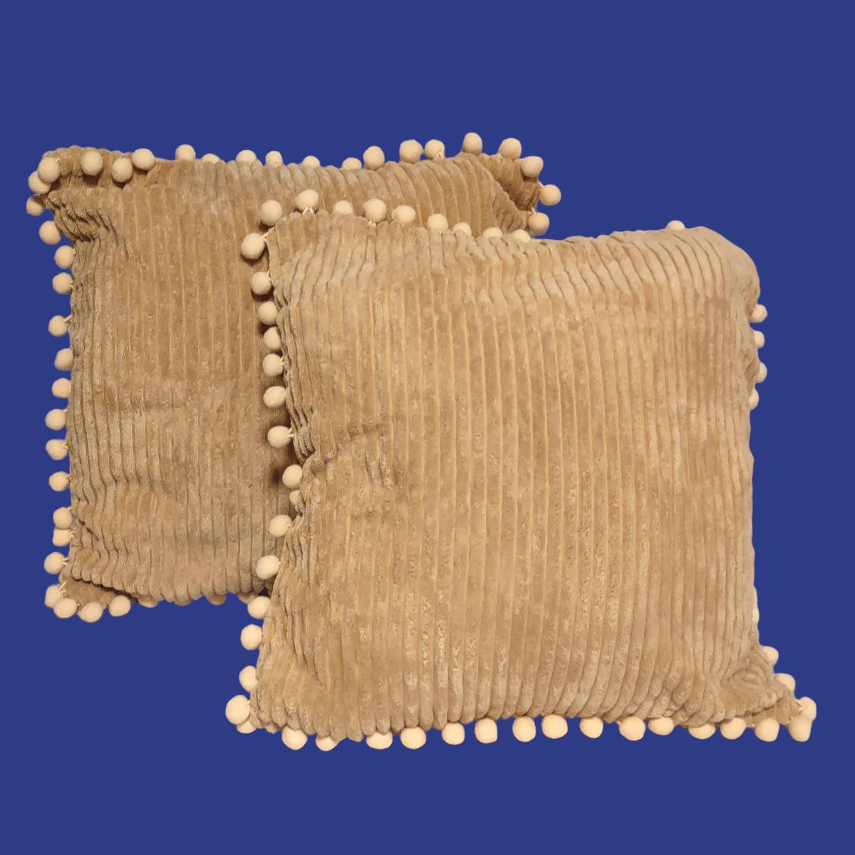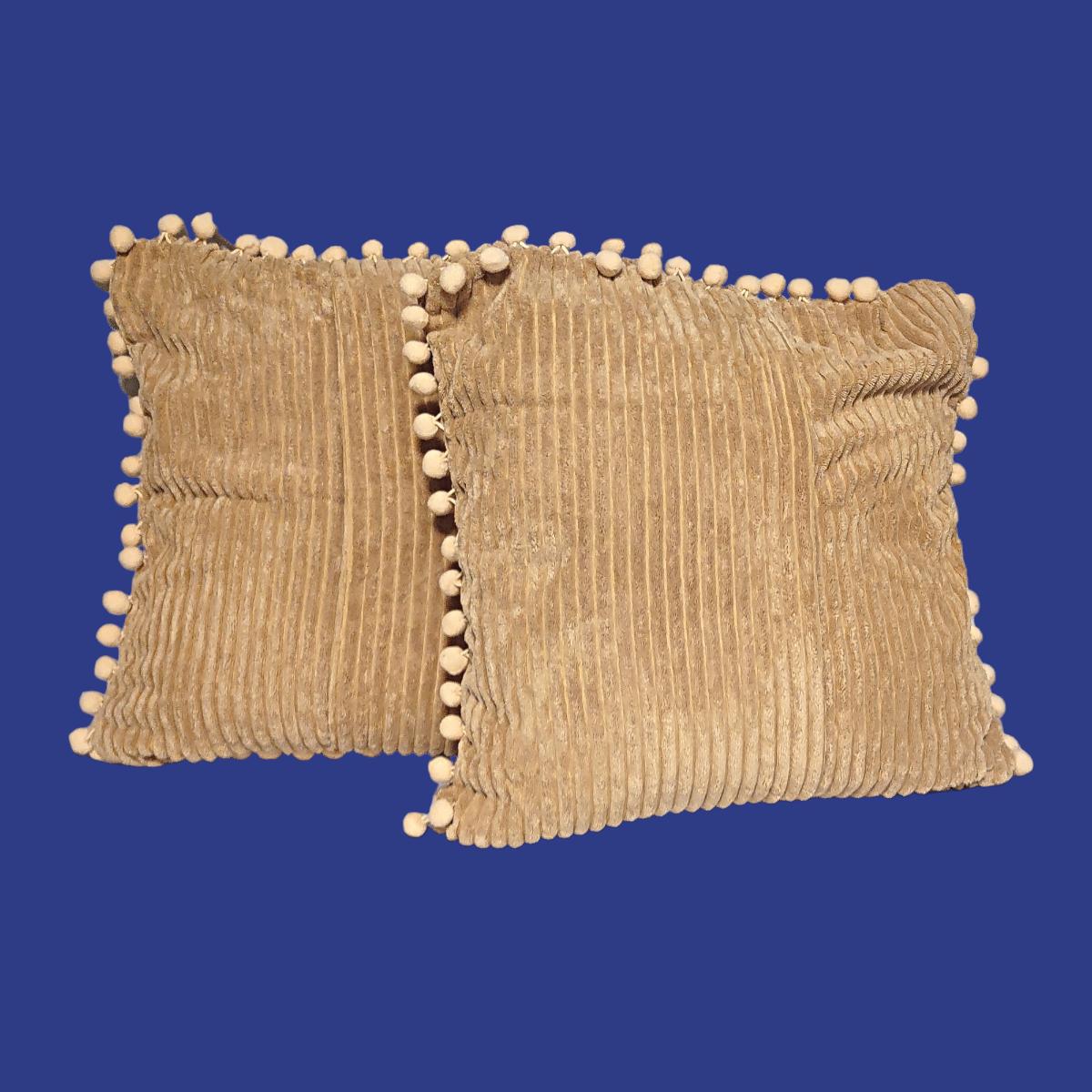 2 Boho Decorative Tan Throw Pillows w/ Pom-Poms (New in Box)