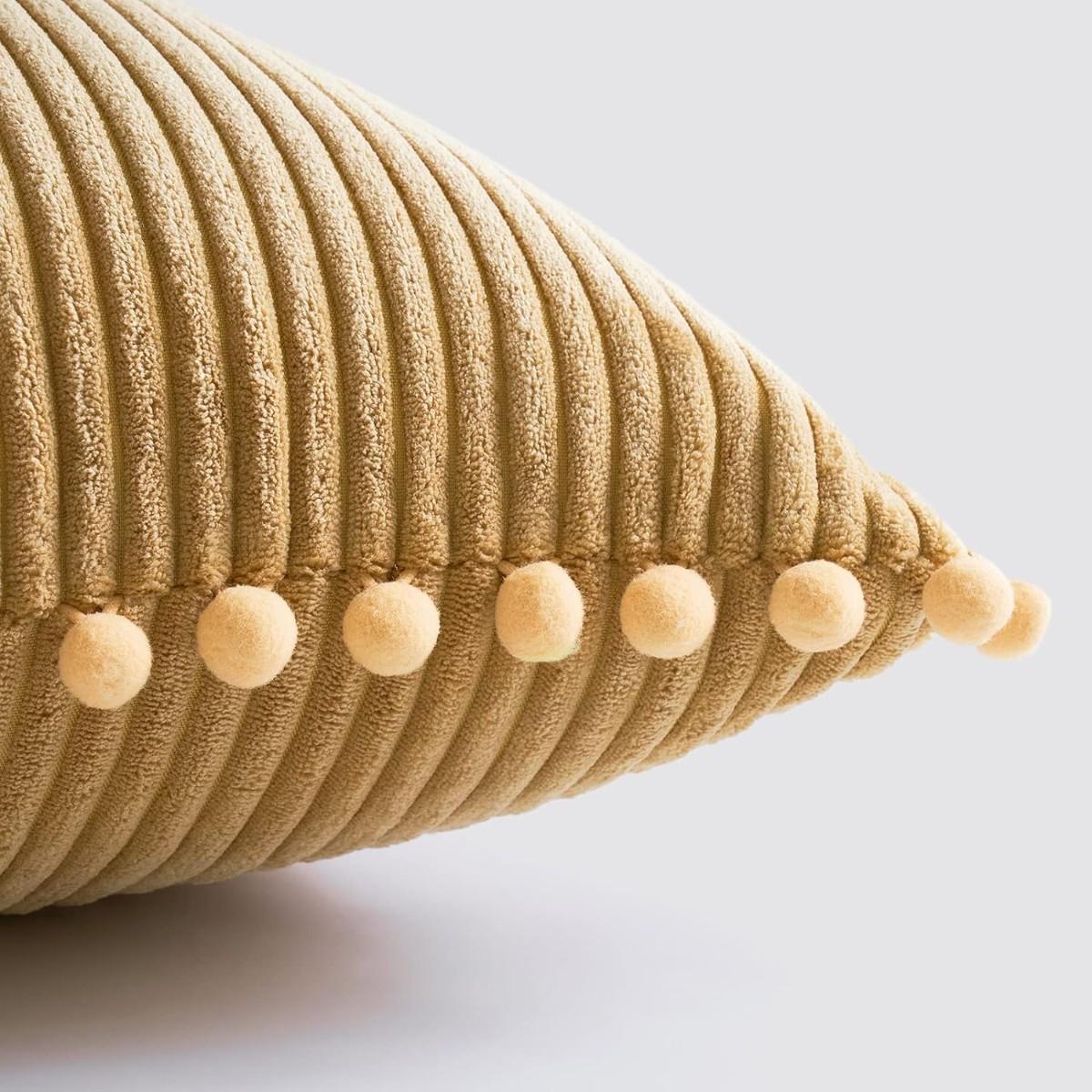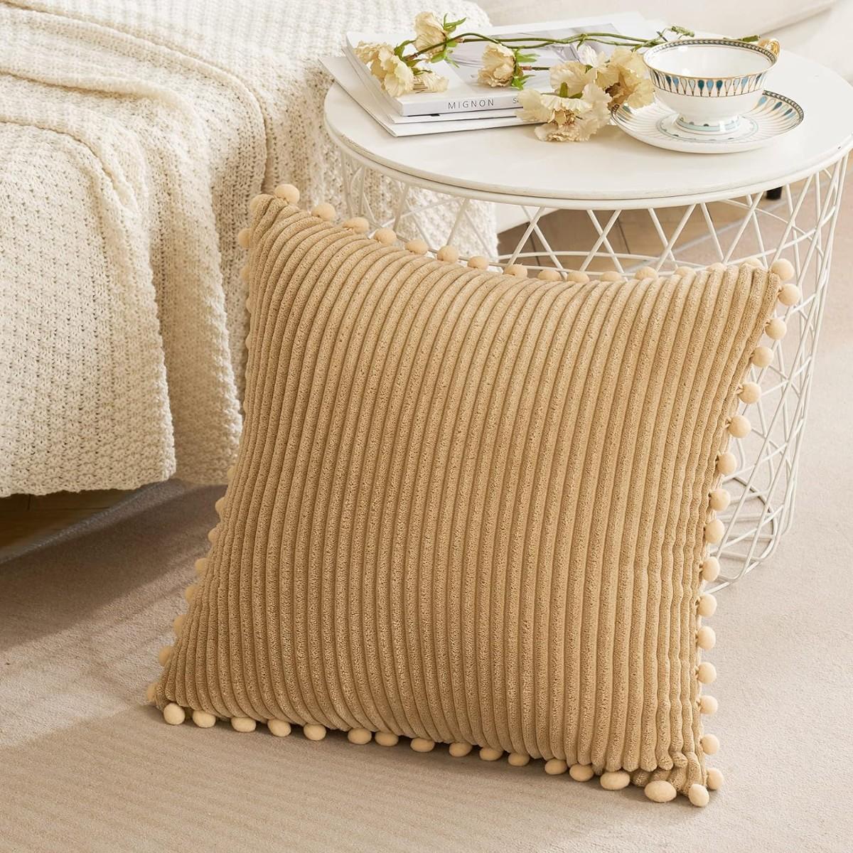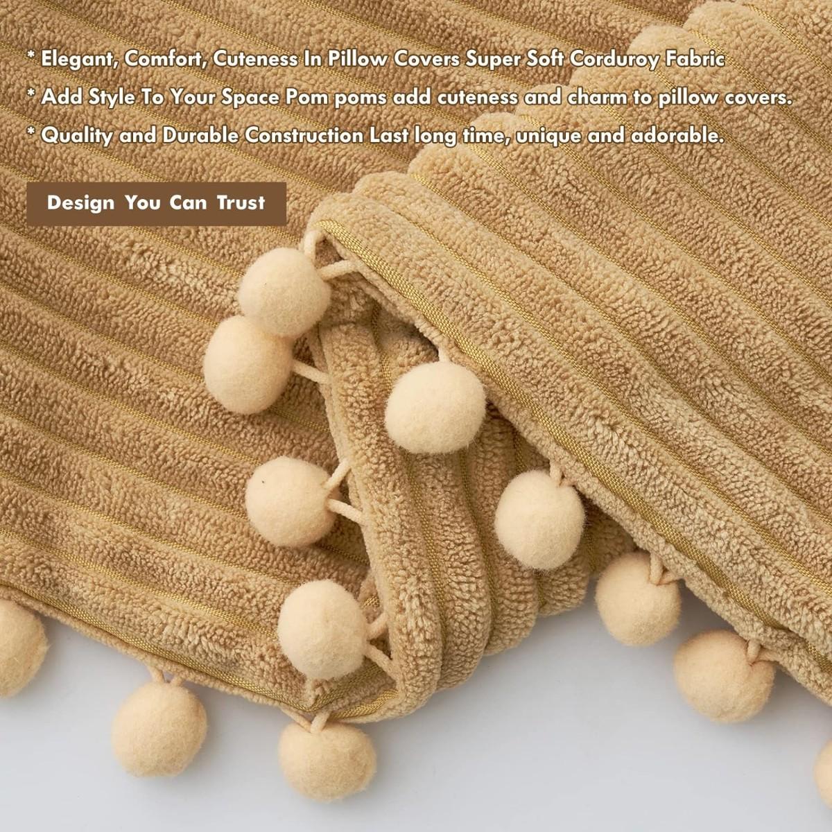 2 Boho Decorative Tan Throw Pillows w/ Pom-Poms (New in Box)