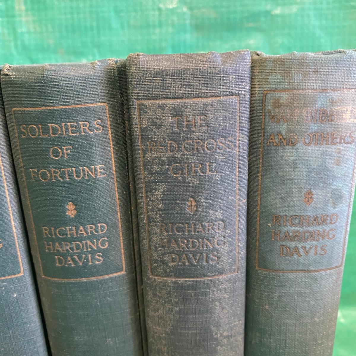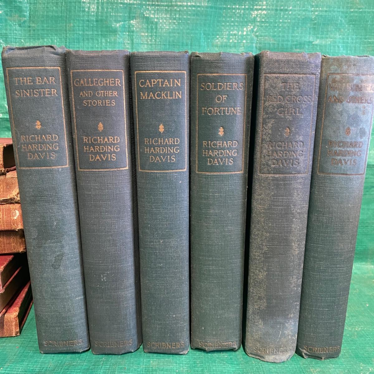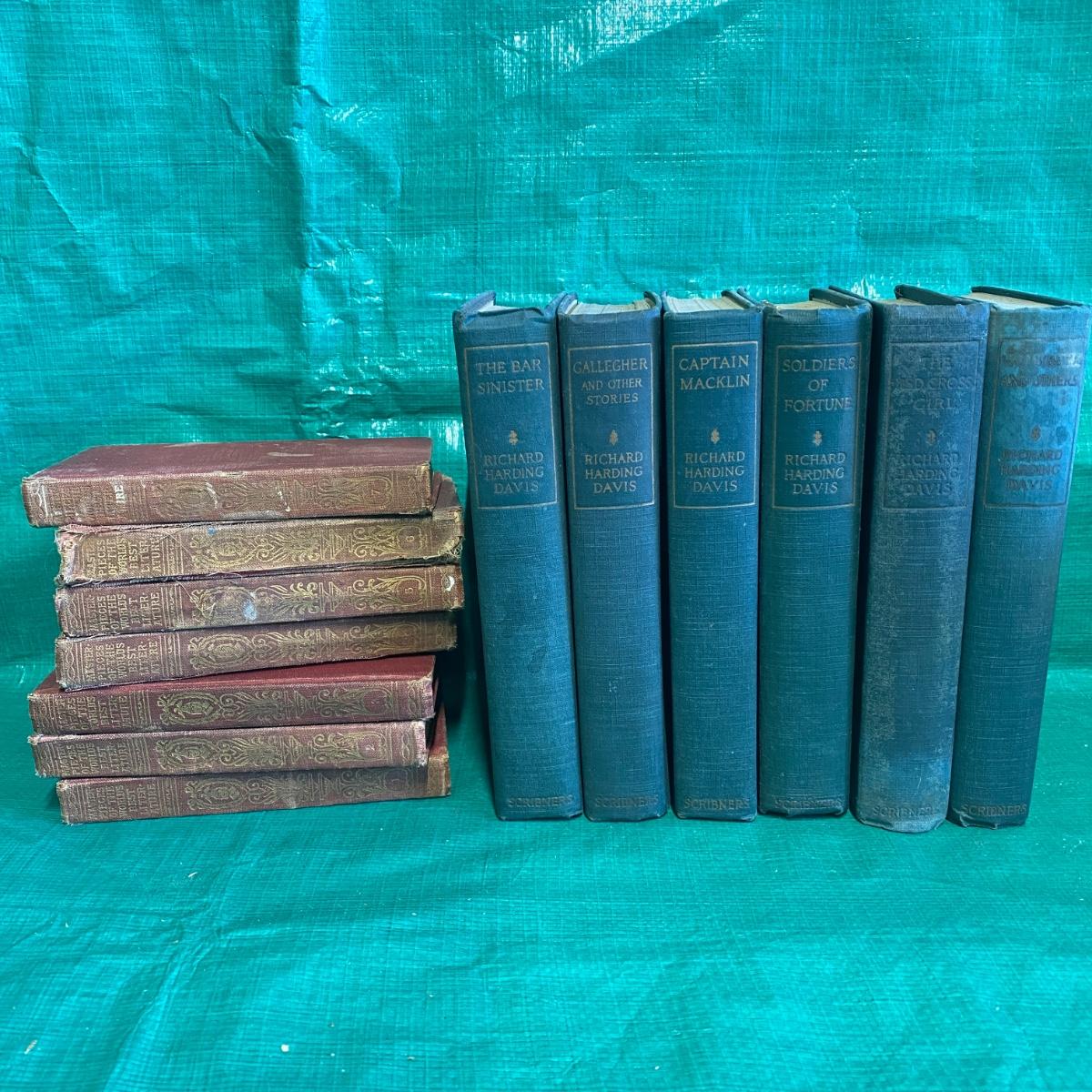 Two antique book sets. Includes A 1919 set of books by Richard Harding Davis. Six total - unsure if this is a complete set. Also includes small red book set of seven Masterpieces of The Worlds Best Literature. 1 thru 7 is included - unsure if it’s a complete set. Shipping available. All have some stains and yellow pages.