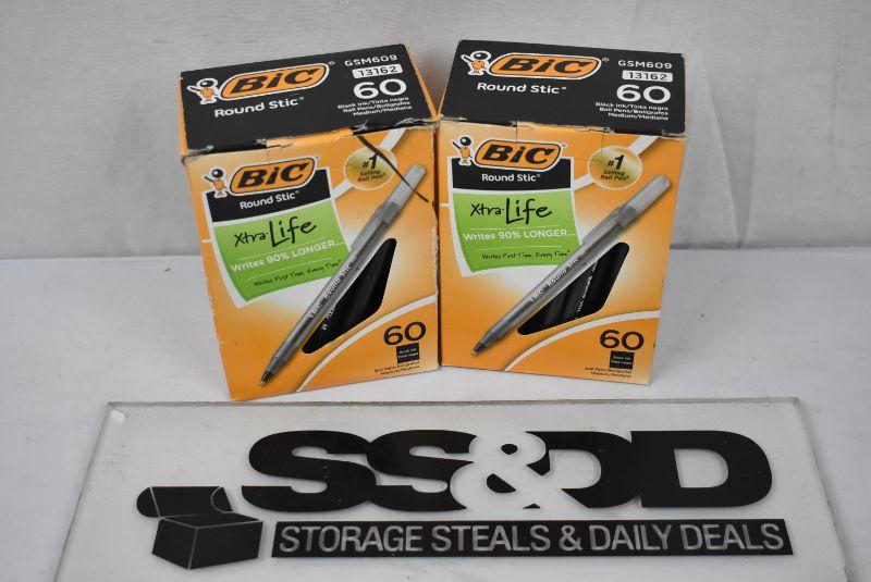 2 Boxes BIC Round Stic Xtra Life Ball Pen, Medium Point, Black, 60/each box