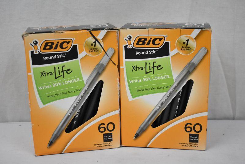 2 Boxes BIC Round Stic Xtra Life Ball Pen, Medium Point (1.0mm), Black, 60 Count in each box