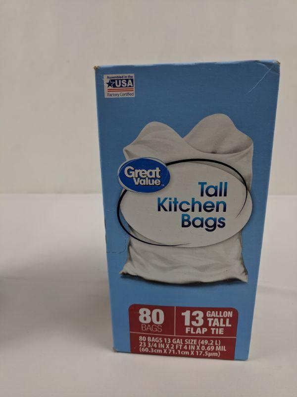 2 Boxes of 80 Bags, 13 Gallon Tall Flap Tie, Great Value - New