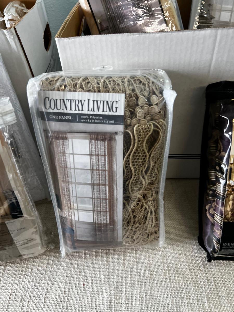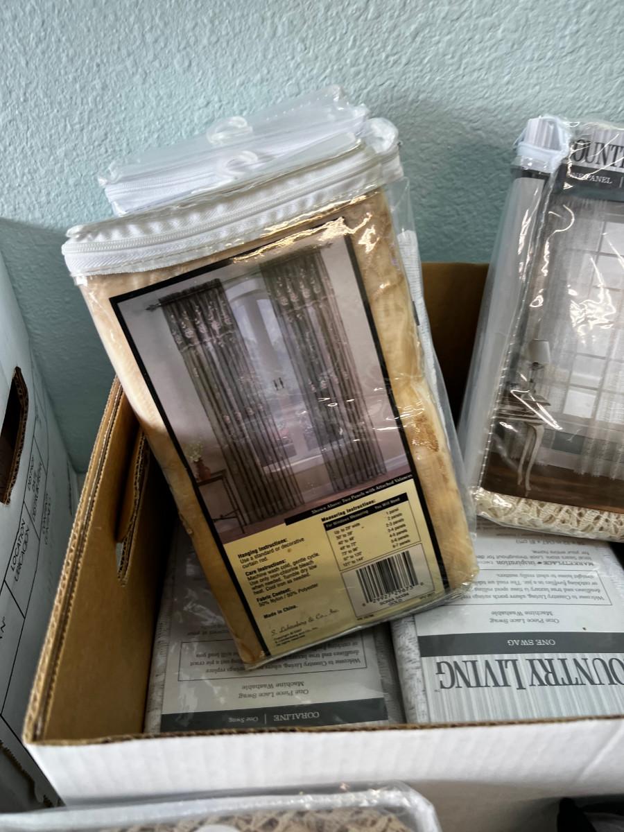 2 Boxes of Curtains. NEW Sheers, Crochet & Lace