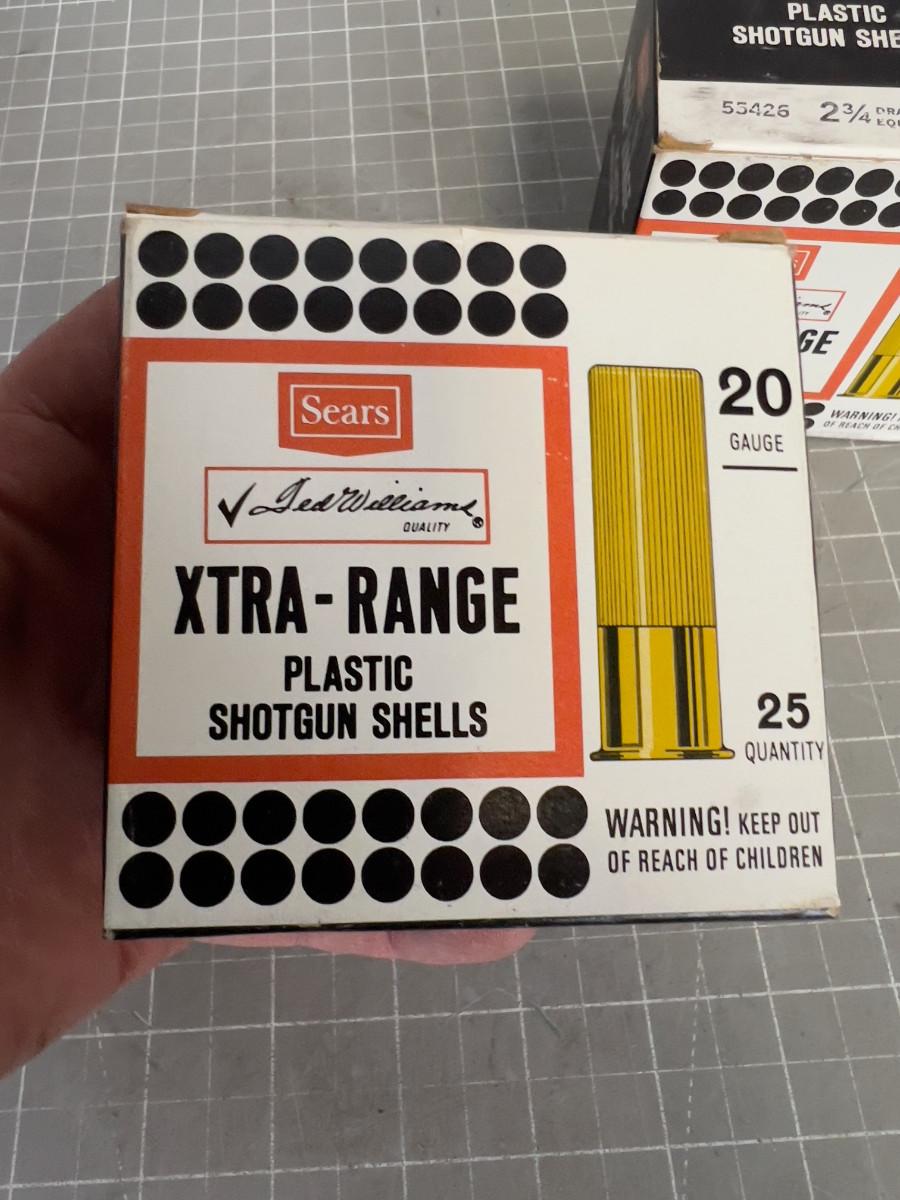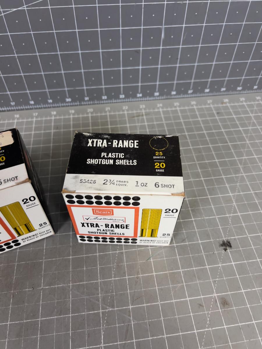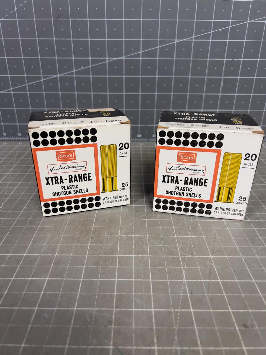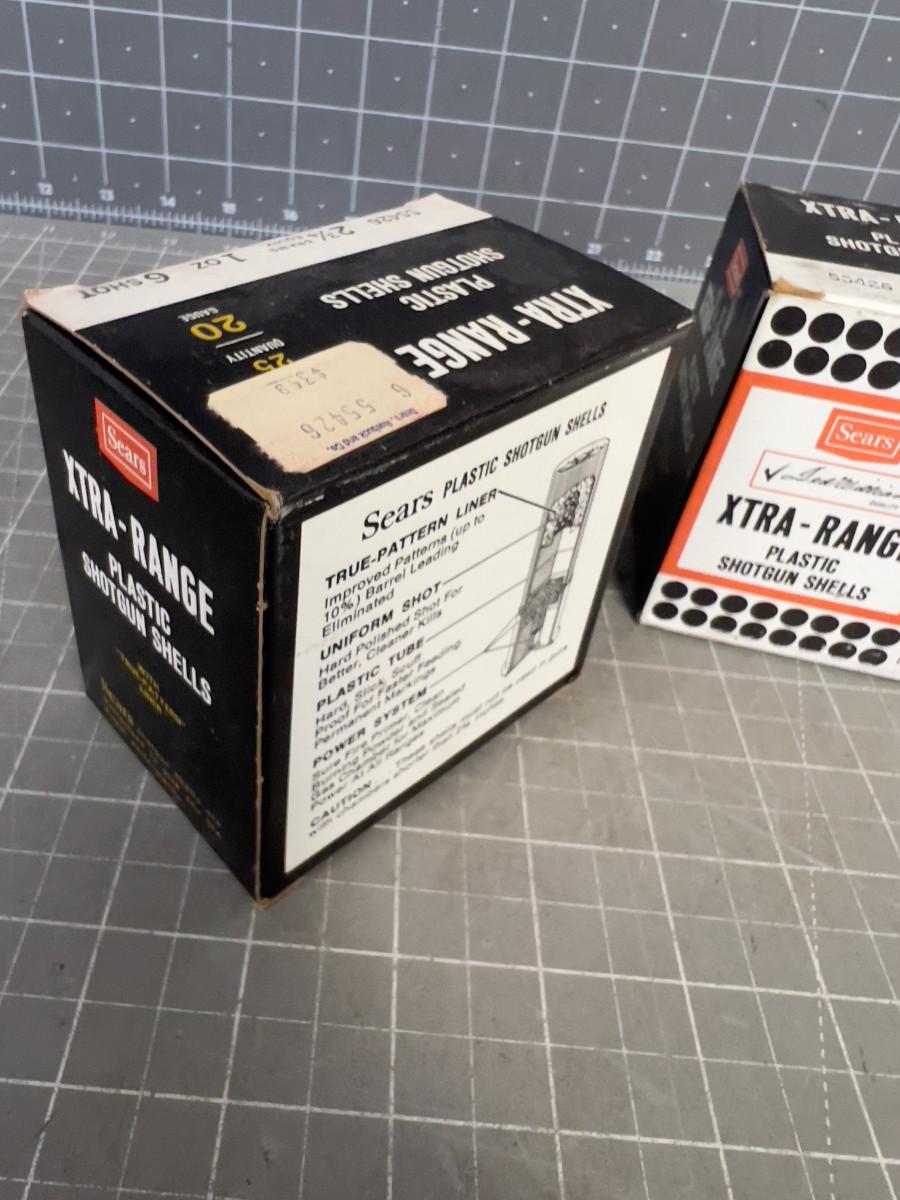 2 Boxes of SEARS Extra Range 20 Guage Shot Gun Shells, New Old Stock.