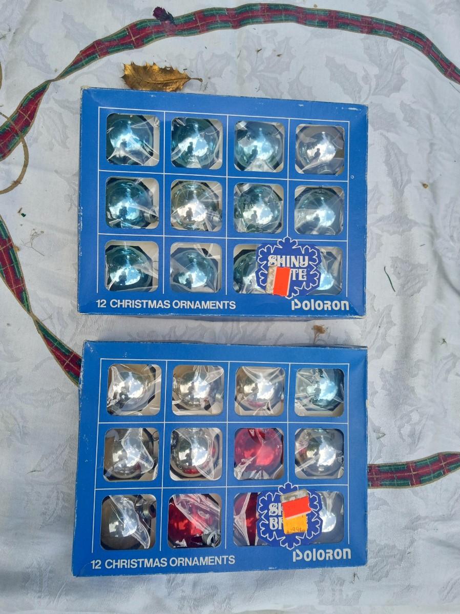 2 BOXES OF SHINY BRITE GLASS ORNAMENTS
