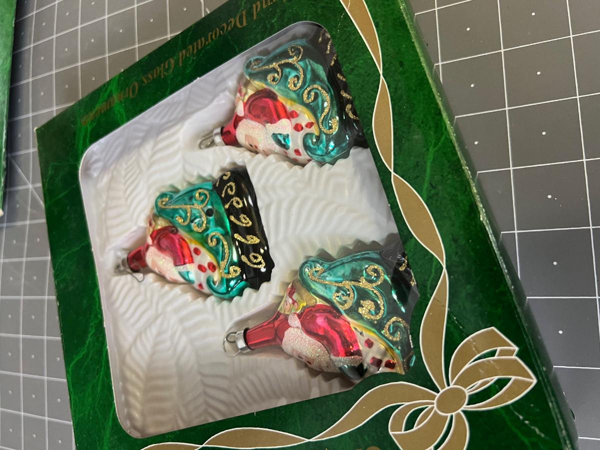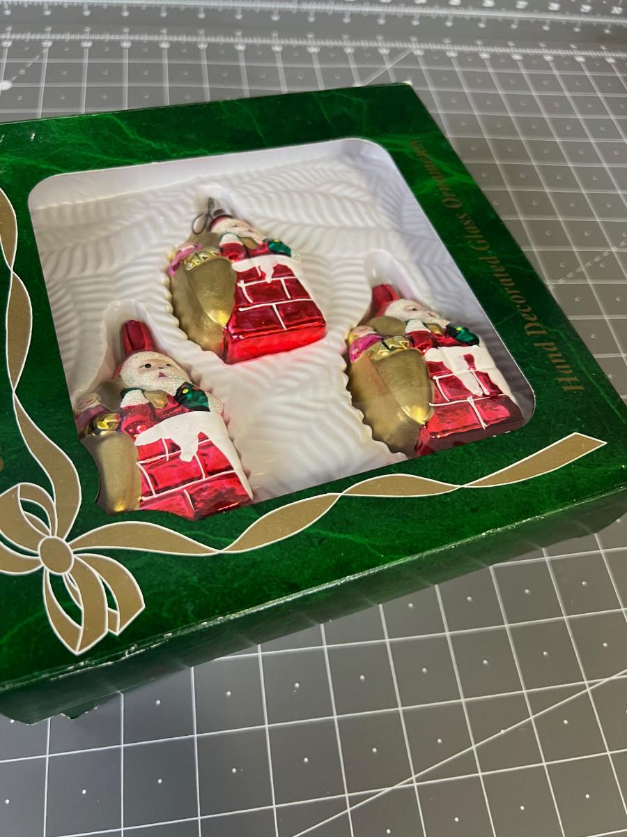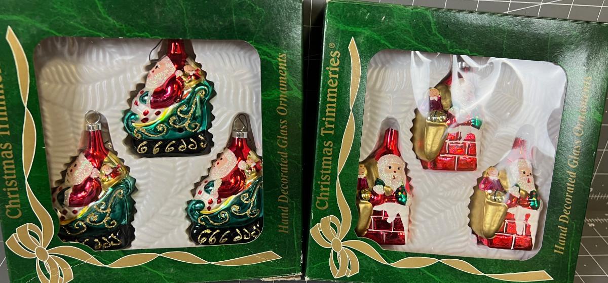 2 Boxes of Vintage Santa Claus Glass Ornaments
