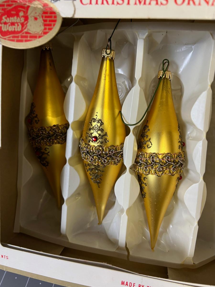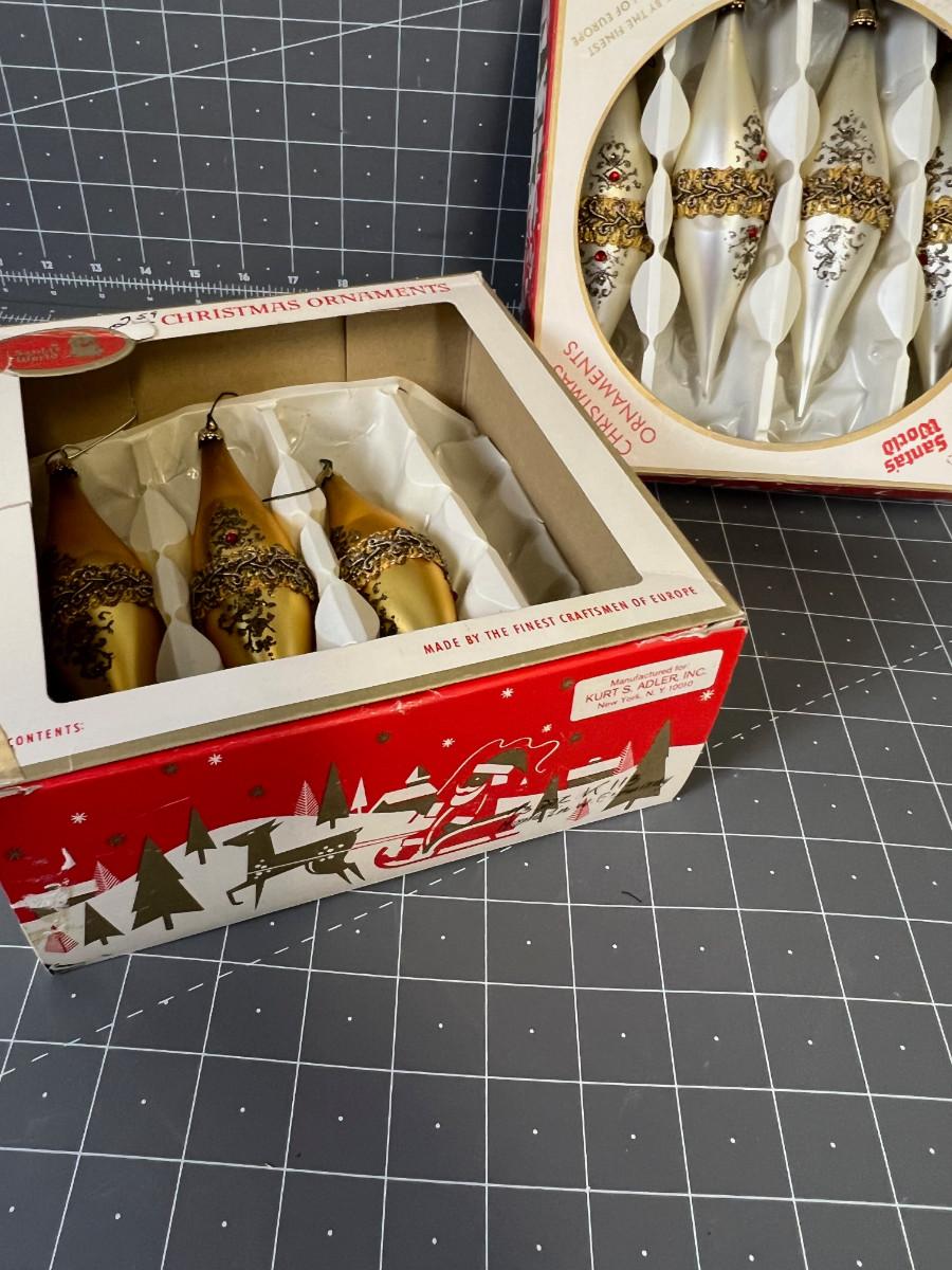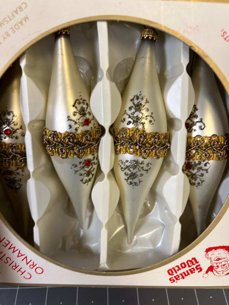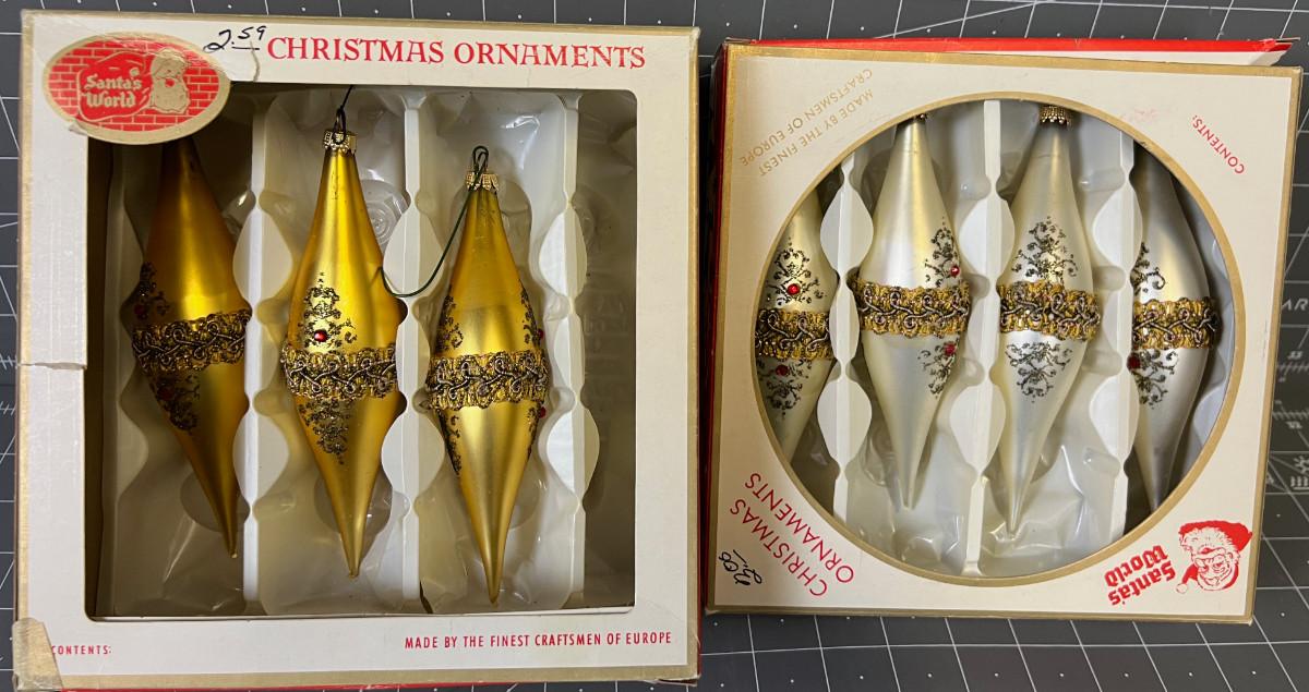 2 boxes of White and Gold Icicles Ornaments Vintage