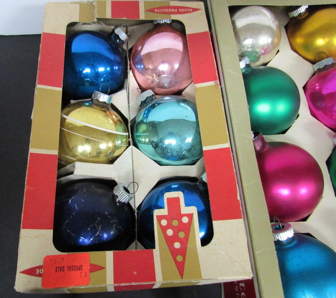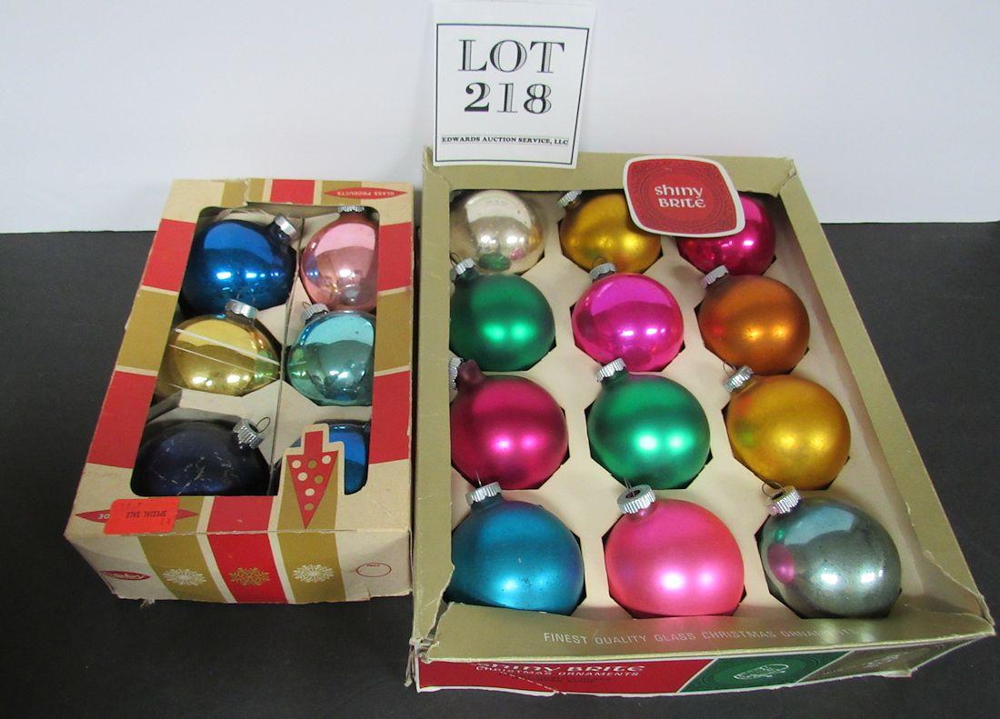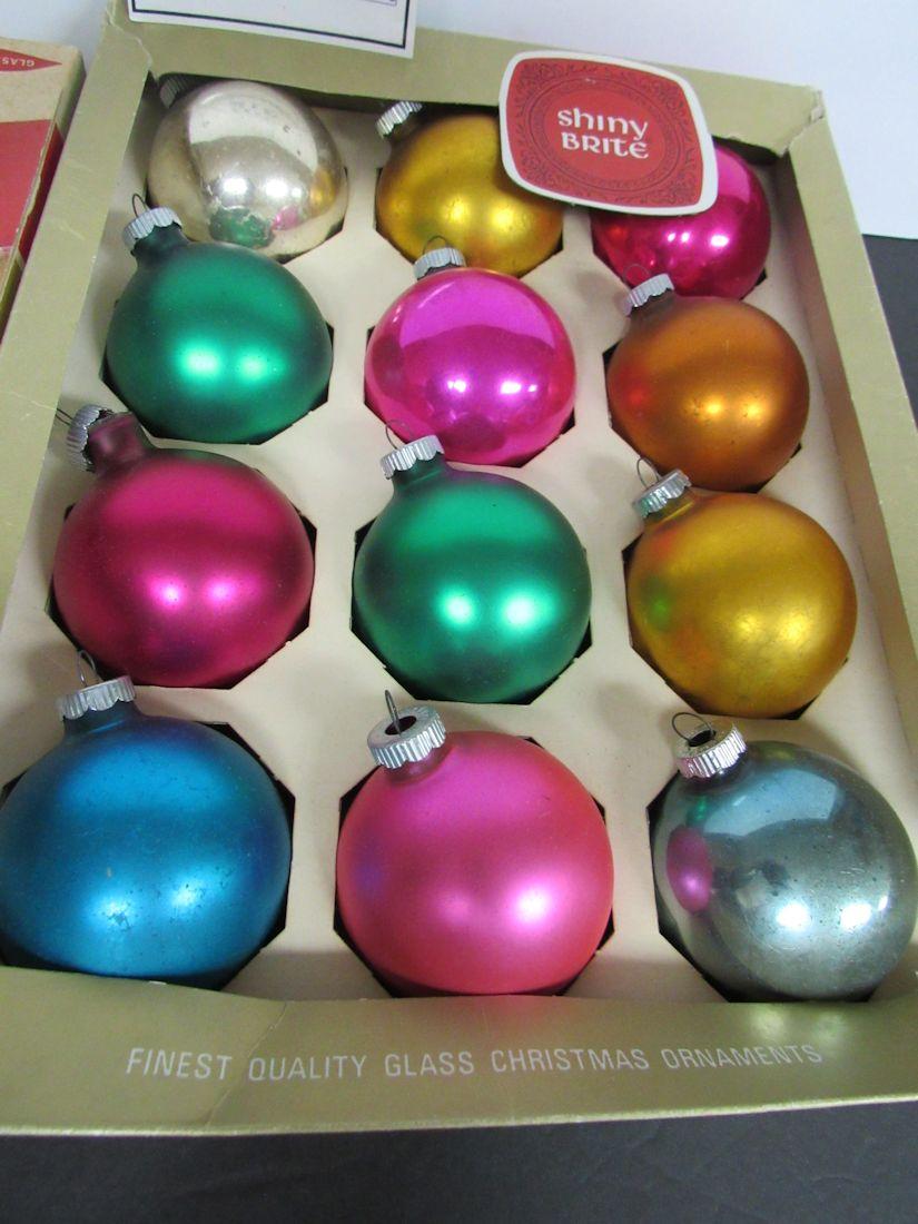 2 Boxes Vintage Christmas Ornaments Shiny Brites and USA