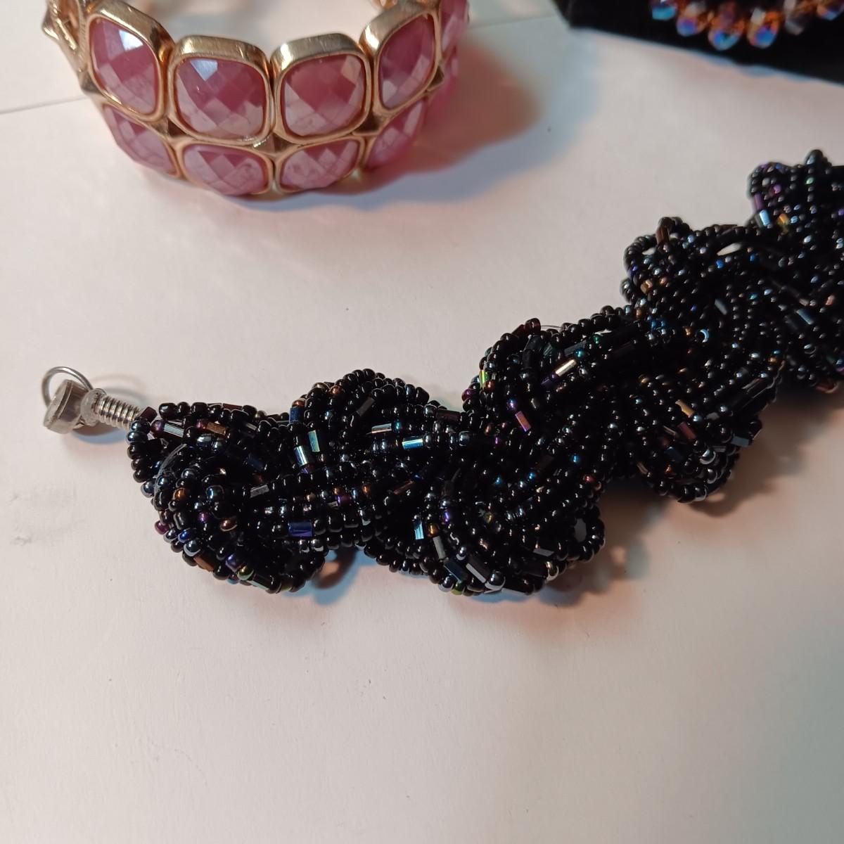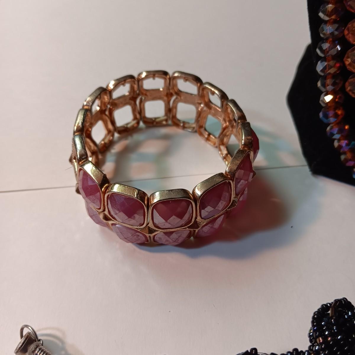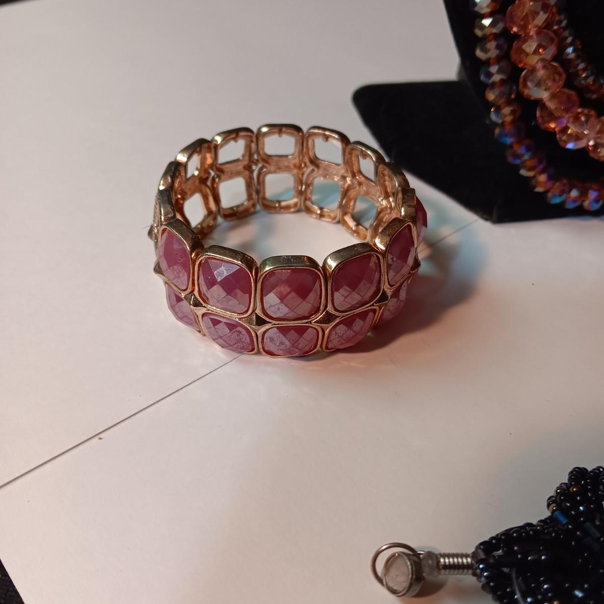 2 BRACELETS, GLASS BEADED NECKLACE AND EARRINGS