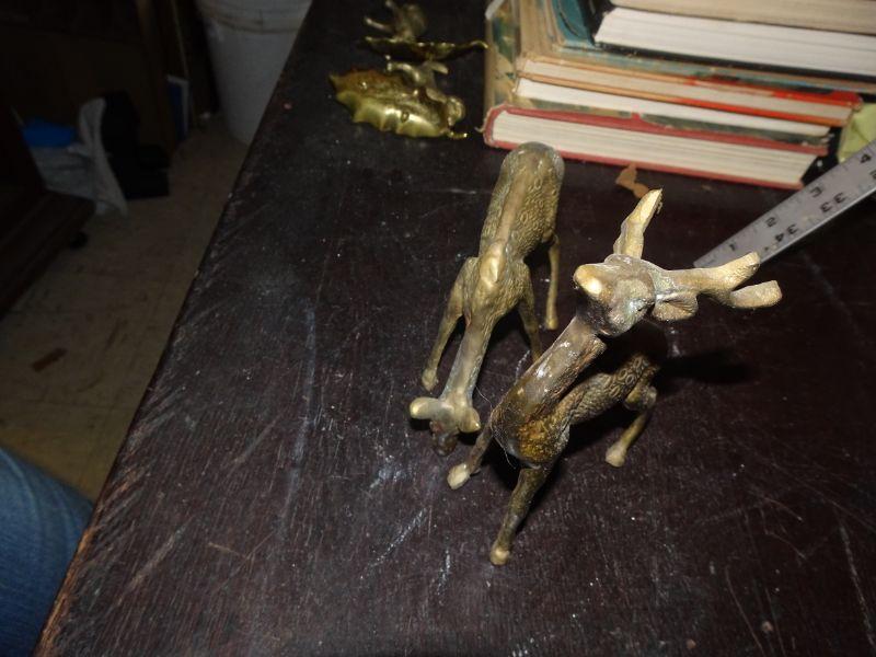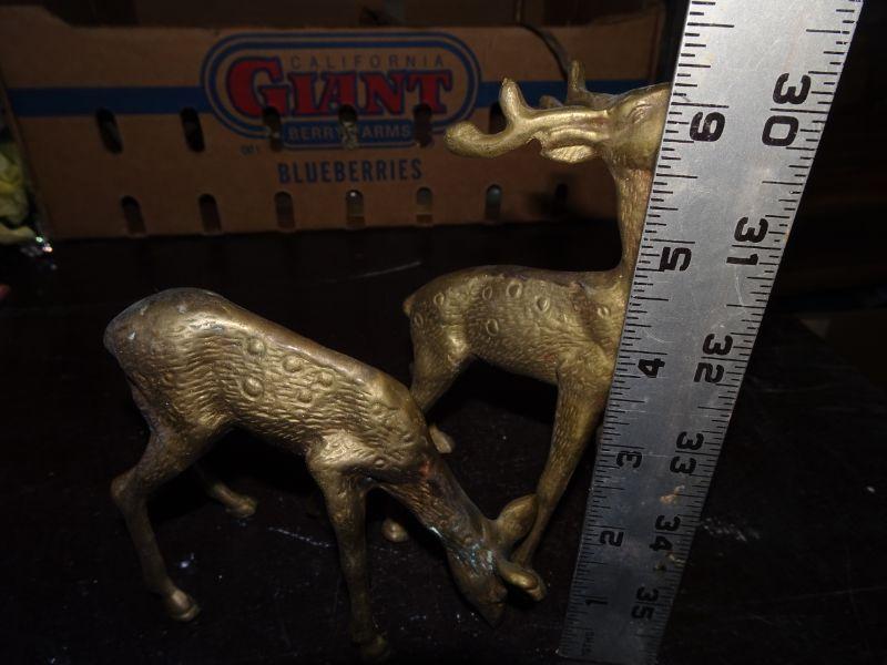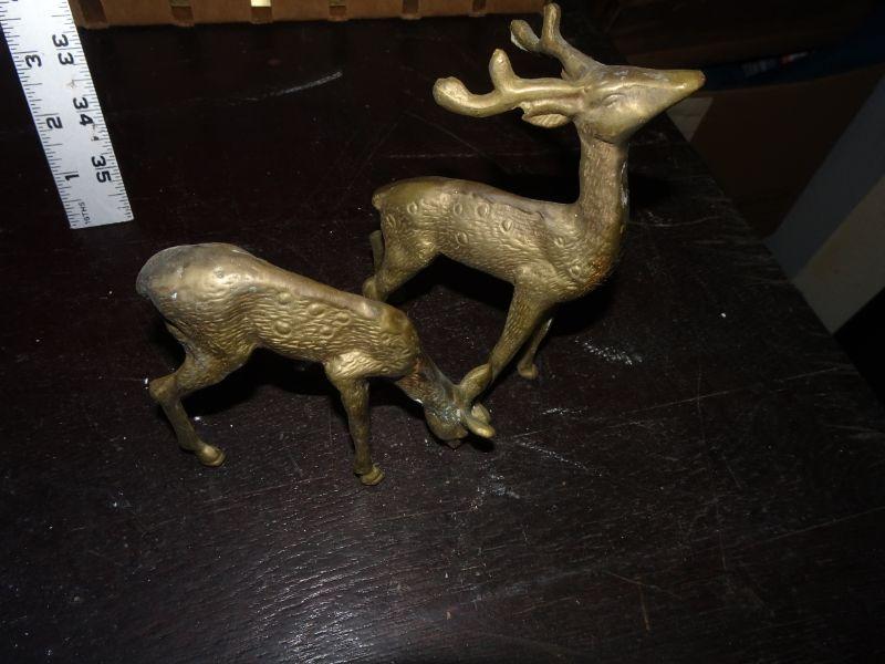 2 Brass Deer Figures, Wildlife, Antlers, Christmas Reindeer